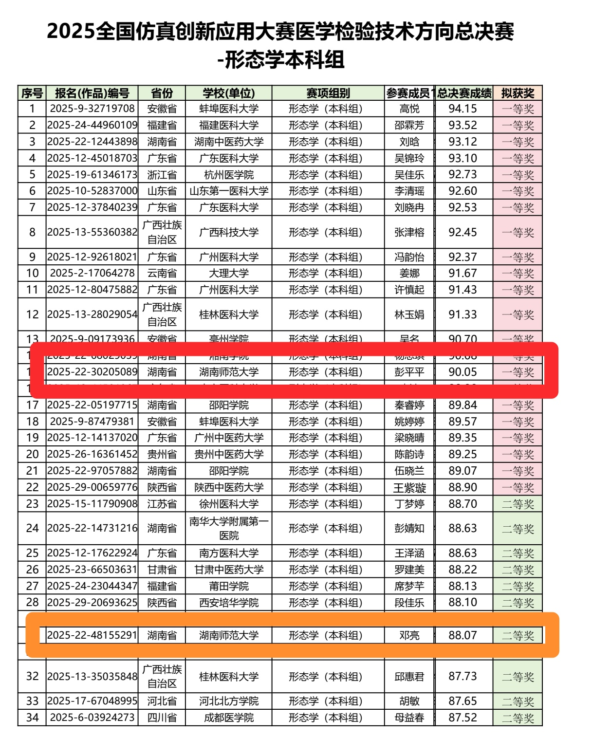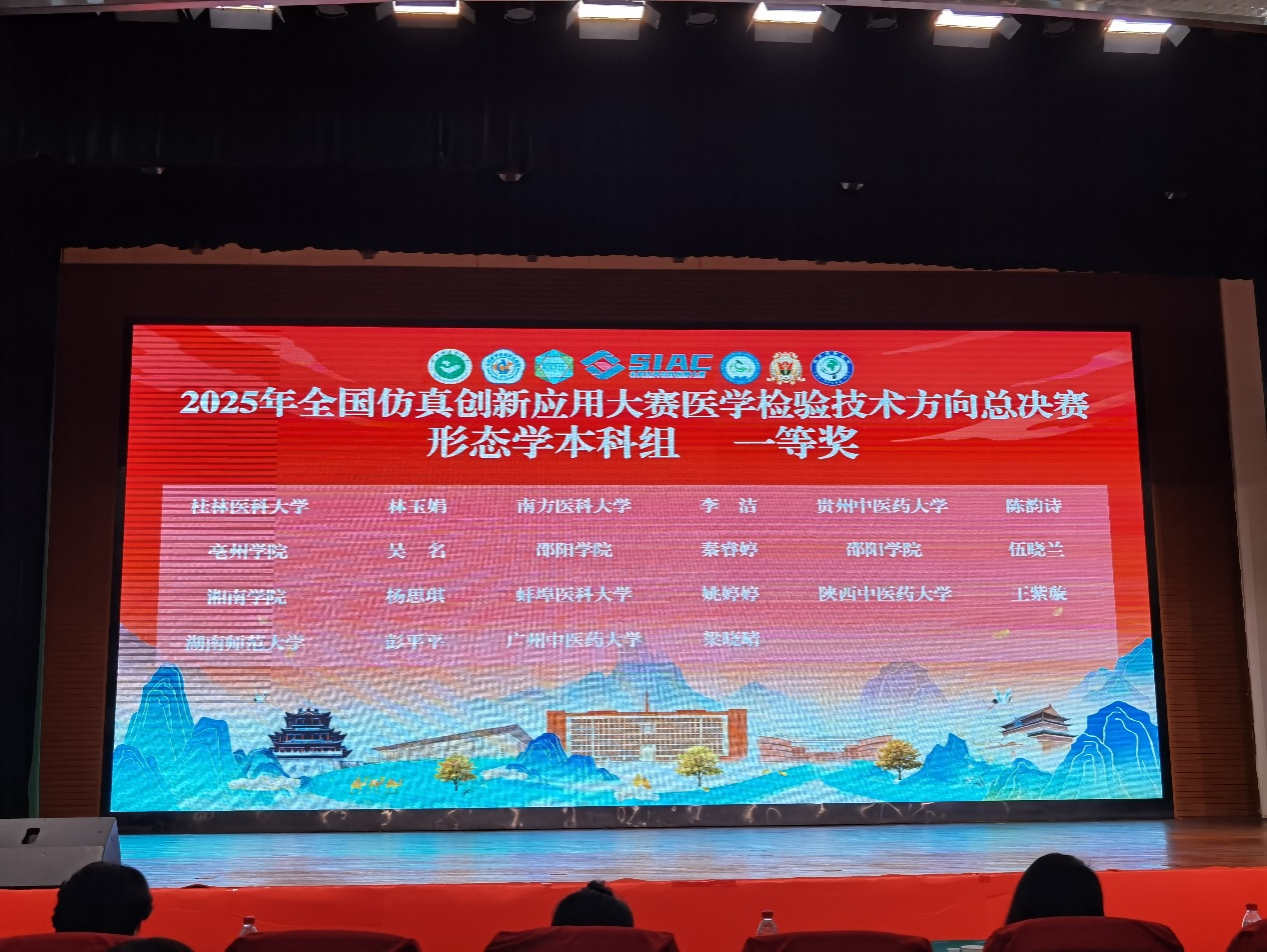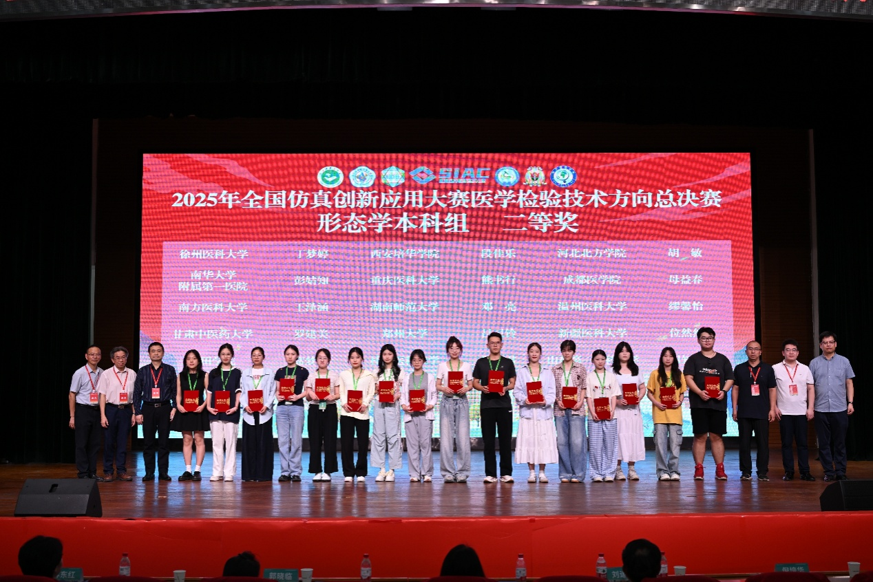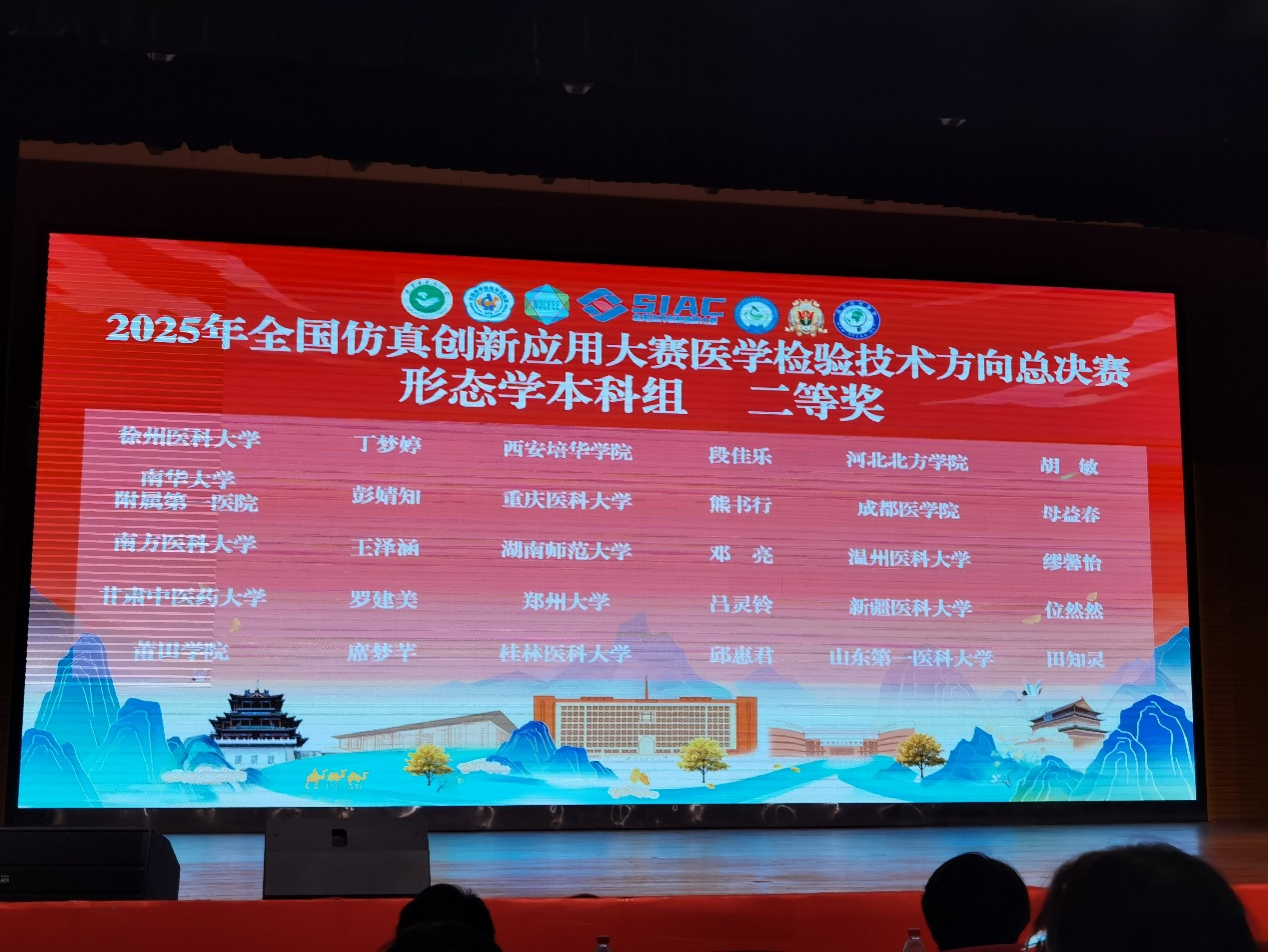 2025年7月17日至19日,全国仿真创新应用大赛(医学检验技术方向)国家级决赛在陕西咸阳成功举办。我校医学技术与转化学院2022级本科学生彭平平、邓亮在医学检验系教师团队的悉心指导下脱颖而出,分别斩获一等奖与二等奖,展现了扎实的专业素养与出色的实践能力。