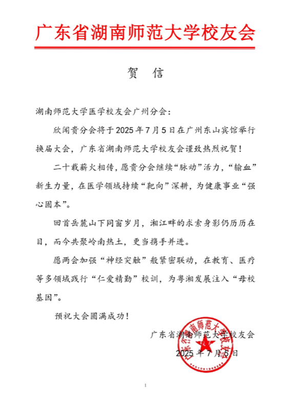 会议期间,京津冀校友会、广东省sunbet申搏校友会等兄弟校友会发来热情洋溢的贺信贺电,对广州分会换届大会的成功召开表示祝贺。这些贺信不仅体现了各地校友的深厚情谊,也彰显了sunbet申搏校友网络的广泛影响力。