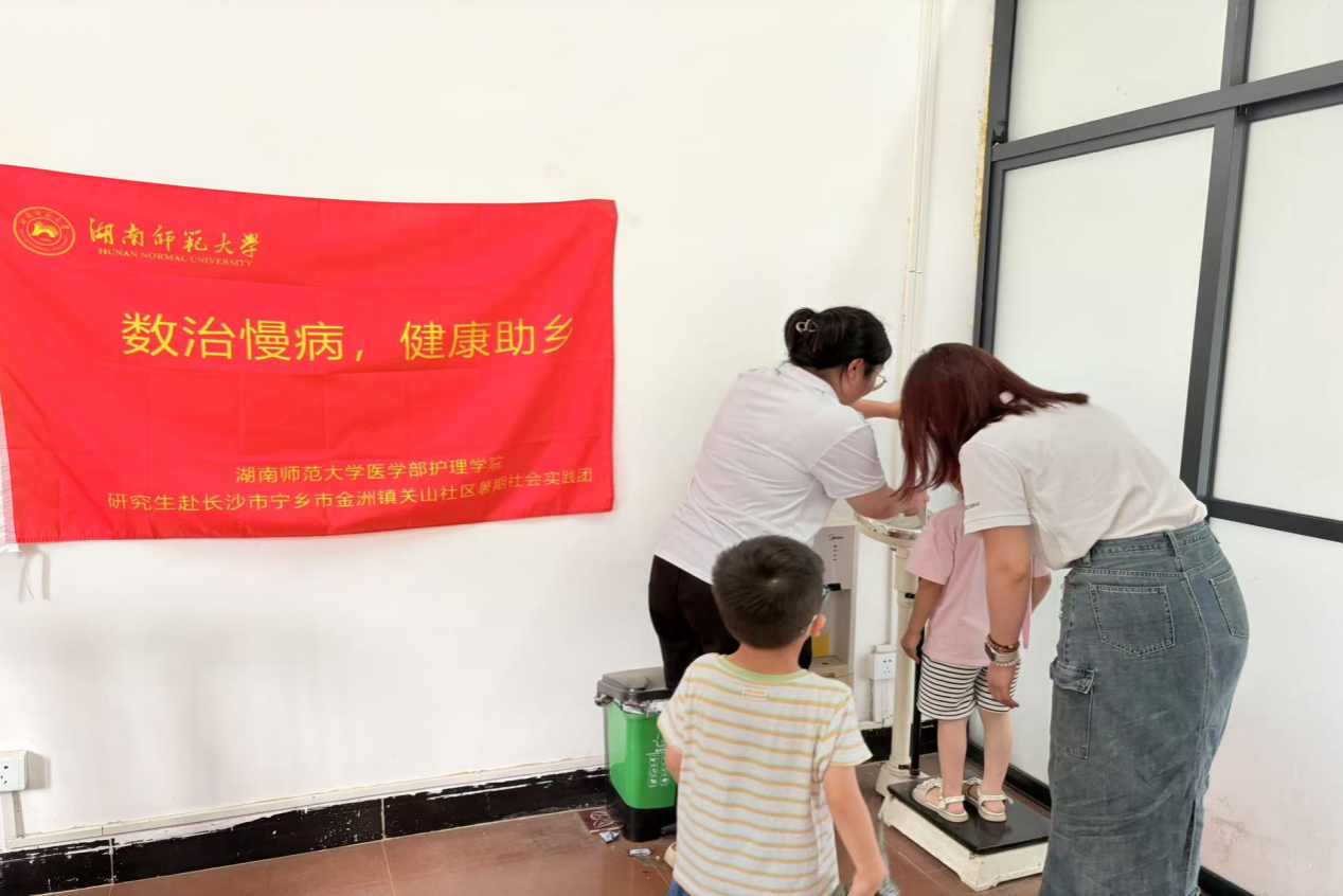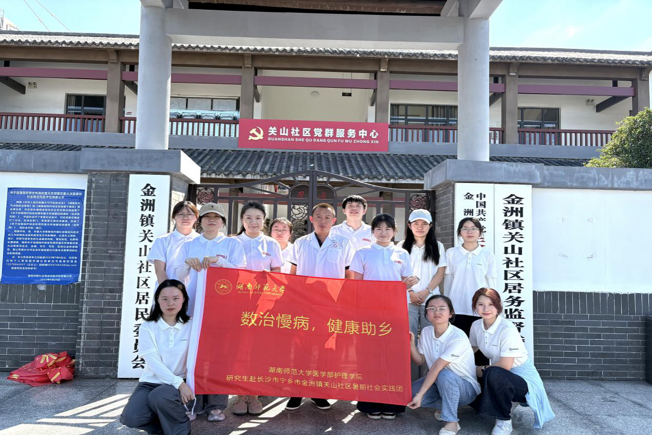2025年7月25日至8月4日,sunbet申搏医学部护理学院“数治慢病,健康助乡”暑期社会实践团在学院老师们的指导下,赴长沙市宁乡市金洲镇关山社区开展为期10天的社会实践活动。团队由12名护理硕士研究生组成,以慢性病数字化管理为核心,通过义诊、健康宣教、基层调研等形式,为乡村健康赋能。