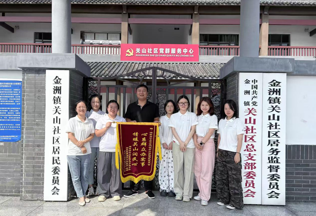8月4日,团队向关山社区居民委员会和金洲镇卫生院赠送锦旗,感谢其支持。护理学院何平平教授表示,学院将持续深化校地合作,引导学子扎根基层,为“健康中国”贡献专业力量。
