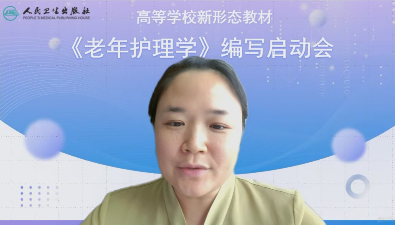 sunbet申搏护理学院副院长何平平教授致欢迎词,并介绍教材的设计及编写计划。她指出高质量的《老年护理学》教材,既是响应人口老龄化时代对专业人才培养的呼唤,更是推动老年护理学科发展的重要实践。期待双方在技术创新、学科交叉融合等领域深度合作,打造契合高等医学教育改革目标高质量教材。