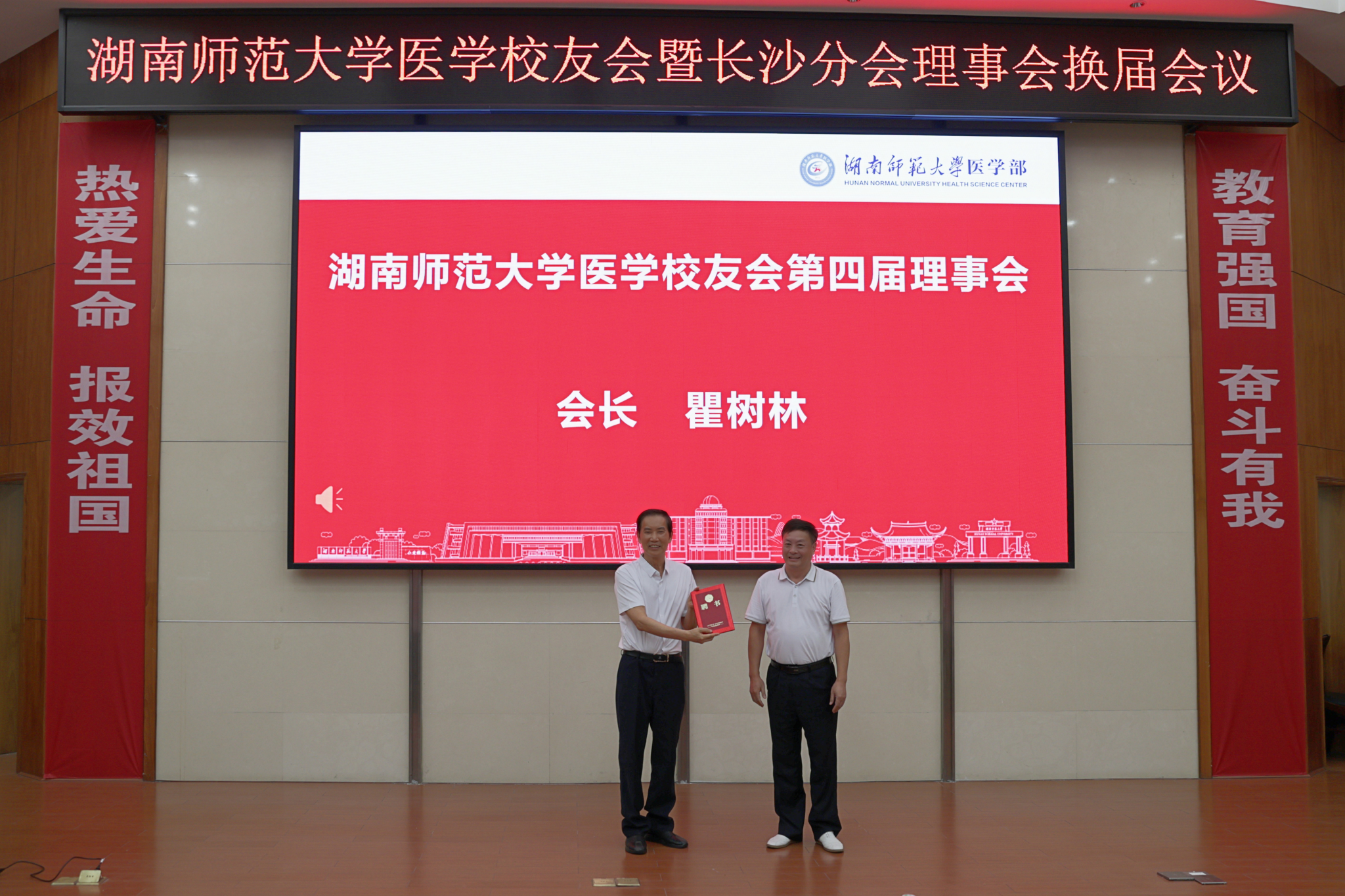 杨勇军在讲话中向母校、前辈和广大同仁致以崇高敬意。他强调新一届长沙分会理事会将紧密围绕健康中国战略,充分发挥医学专业优势,致力于政策建言、健康科普与资源整合,持续助力母校医学学科建设与人才培养,让师大医学人“为人民健康服务”的赤子基因在新时代焕发新活力。杨勇军呼吁广大校友携手并肩,以专业能力服务国家战略,以公益行动温暖社会角落,以赤子之心回报母校培养。