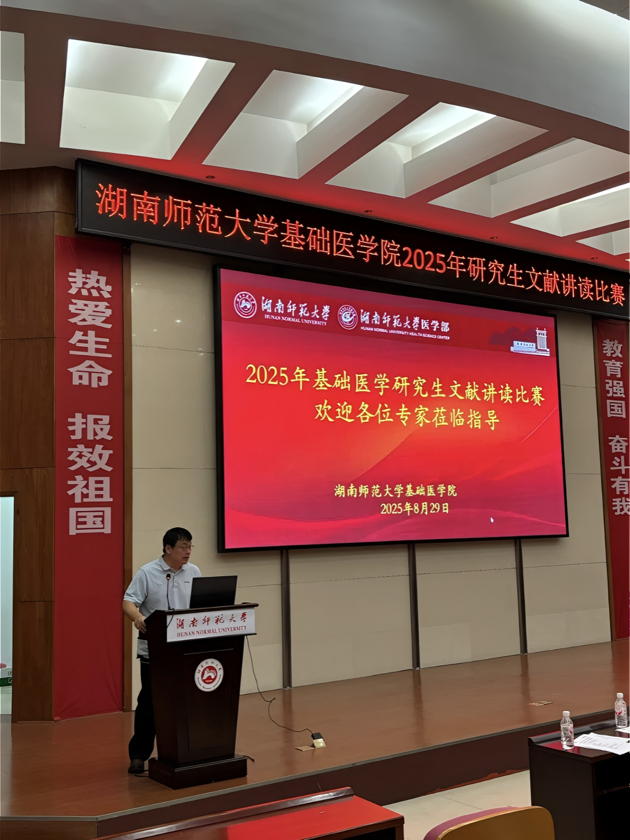 比赛伊始,余星教授致开幕词。他充分肯定基础医学院组织研究生开展文献讲读比赛,同时鼓励广大师生接续优良作风并发扬光大,共同探索高水平科研成果与科研能力提升。