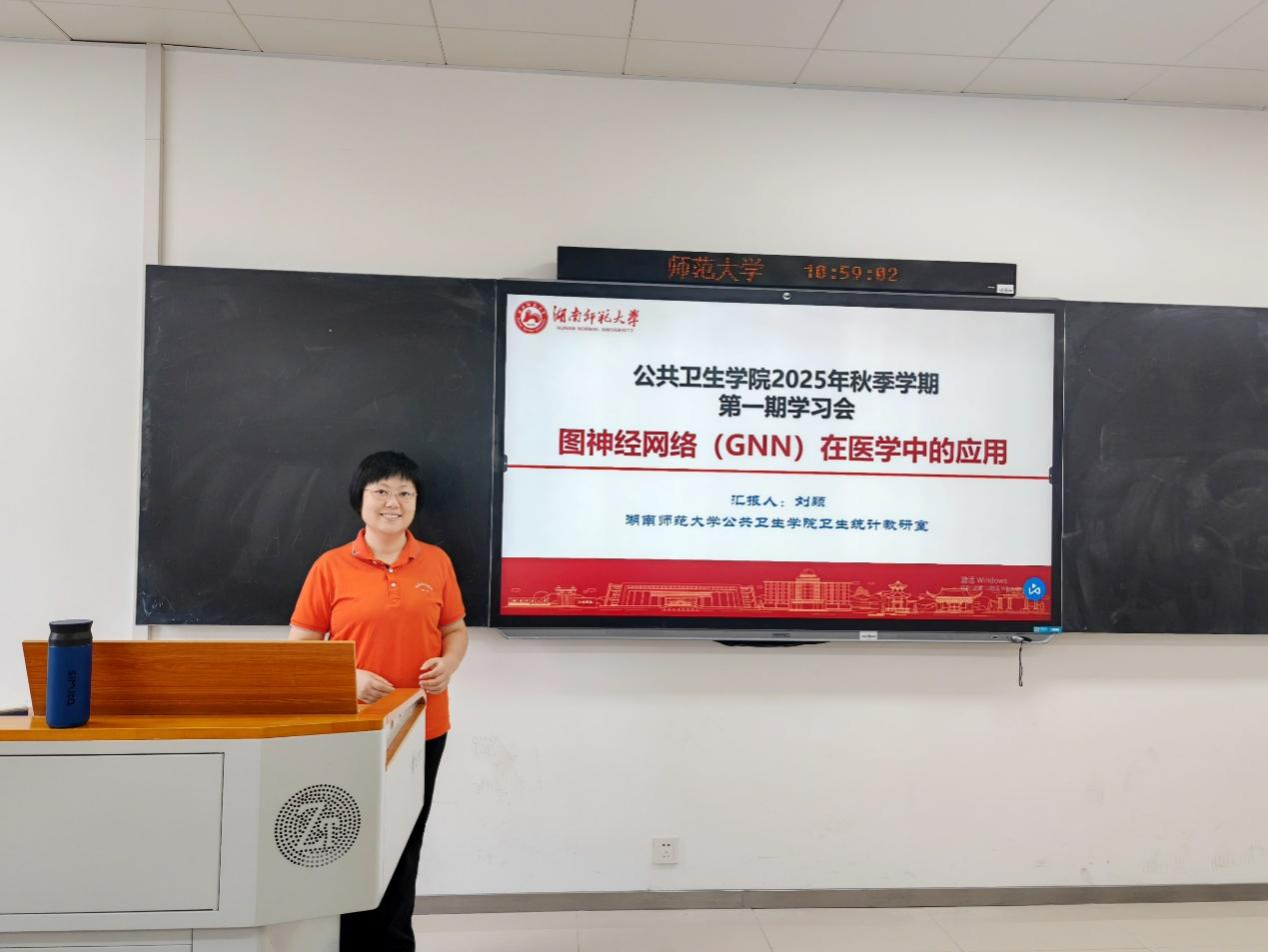 徐坤教授介绍参会嘉宾和会议日程。他强调了学部和学院对于定期业务学习会的高度重视,并详细解读会议的三大主要议题:一是“学术前沿洞察”——谢颖老师的文献精解;二是“数据驱动的讲台”——刘颖老师《AI让教学“算”出奇迹:图神经网络在医学中的应用》;三是“课题揭幕战”——郑婵娟老师的国家自然科学基金青年项目申报分享。他鼓励广大师生积极参与学习,期待全院师生共同学习和探索高水平科研成果与科研能力提升。