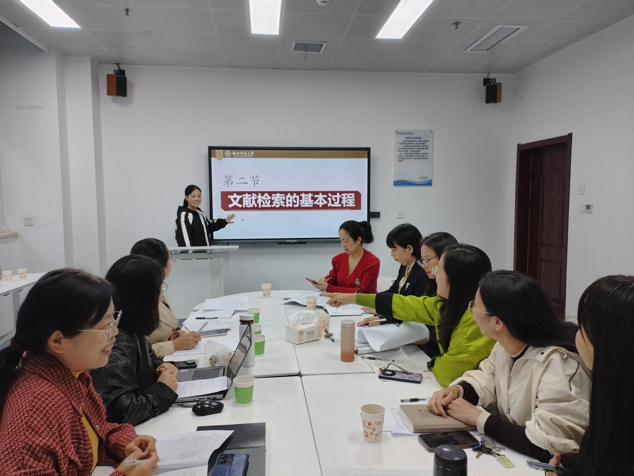 紧接着,肖美丽老师围绕《护理研究》中“文献检索”这一核心技能展开教学。她的课件设计精美、逻辑清晰,充分利用了数据可视化图表和学术数据库的实时操作演示,将繁琐的检索步骤讲解得生动明了。她特别强调了科研诚信的重要性,自然地将“严谨求实、探索创新”的科学精神作为课程思政落脚点,实现了知识传授与价值引领的有机统一。