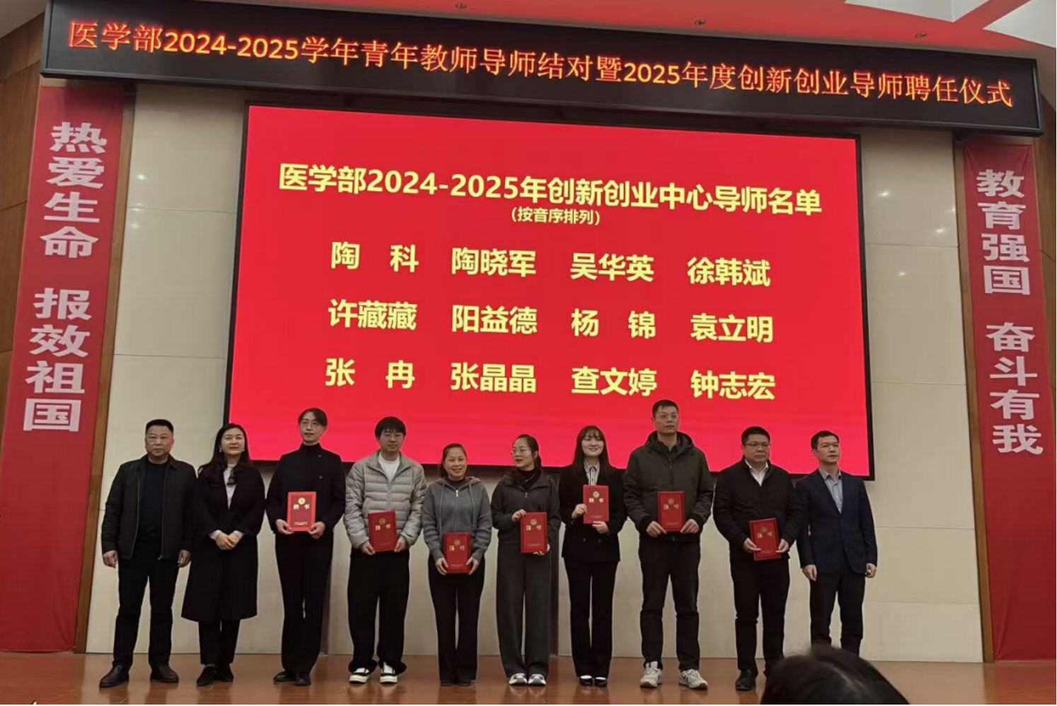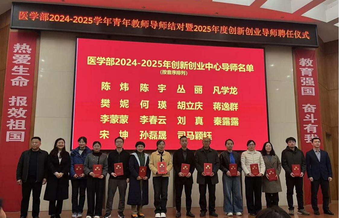 2025年12月18日下午,sunbet申搏医学部在仁医楼举行医学部大学生创新创业中心导师聘任仪式。学工办主任郭铭伟宣读《关于公布2025年医学部创新创业中心导师名单的通知》。本次遴选产生的导师任期为三年,自通知发布之日起计算,同时要求入选导师严格依照创新创业中心章程,切实履行相应职责,并向凡学龙、张晶晶、查文婷等27名导师颁发聘书。