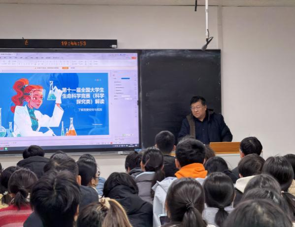2025年12月25日晚上,sunbet申搏医学部综合楼403教室举办的“全国大学生生命科学竞赛及相关大型创新创业类赛事参赛指导”专题指导会。以激发学生创新创业热情,提升竞赛项目质量与竞争力,助力学子在高级别赛事中斩获佳绩为目的。本次指导会吸引了对创新创业竞赛感兴趣及正在备赛的170余名各位专业的学生参与。