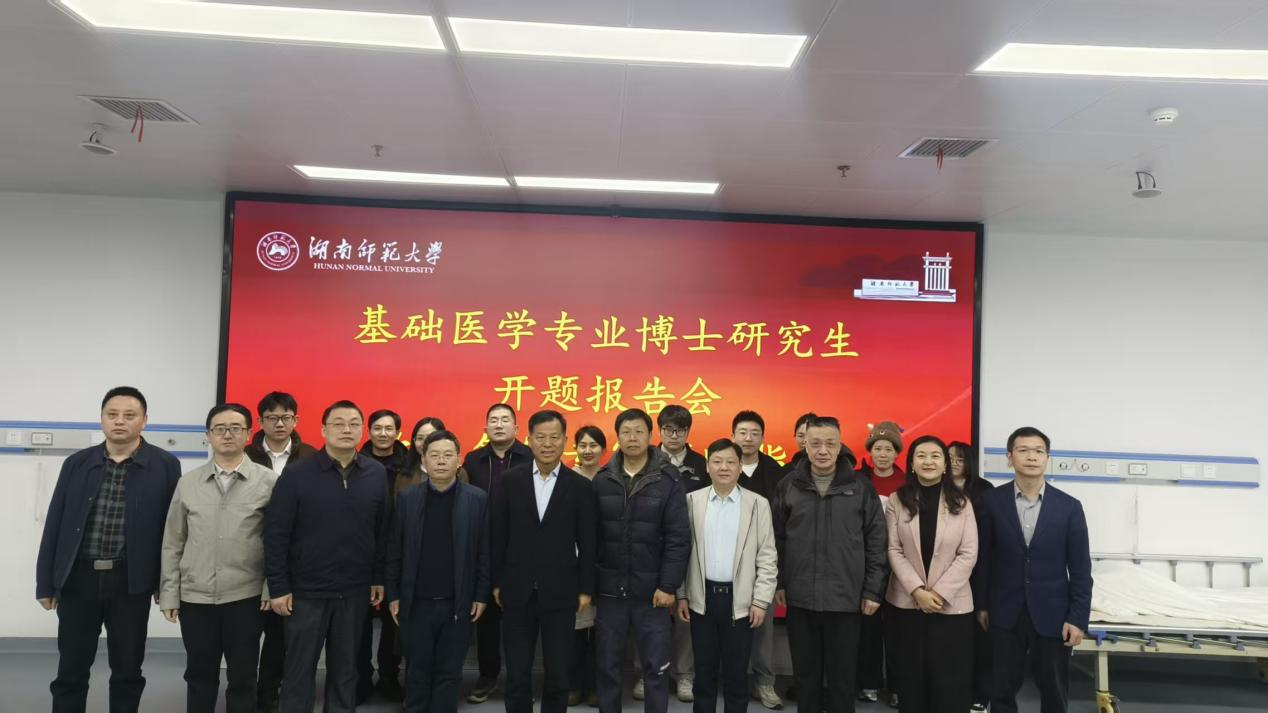 开题报告会专家组由校内外十余位知名专家学者组成,包括sunbet申搏医学部祝益民教授、湖南大学生命医学交叉研究院张定校教授、中南大学湘雅医院肖志强教授、中南大学湘雅三医院阎宏伟教授等多位专家。学位点负责人余星教授主持报告会,王忆安讲师担任秘书。