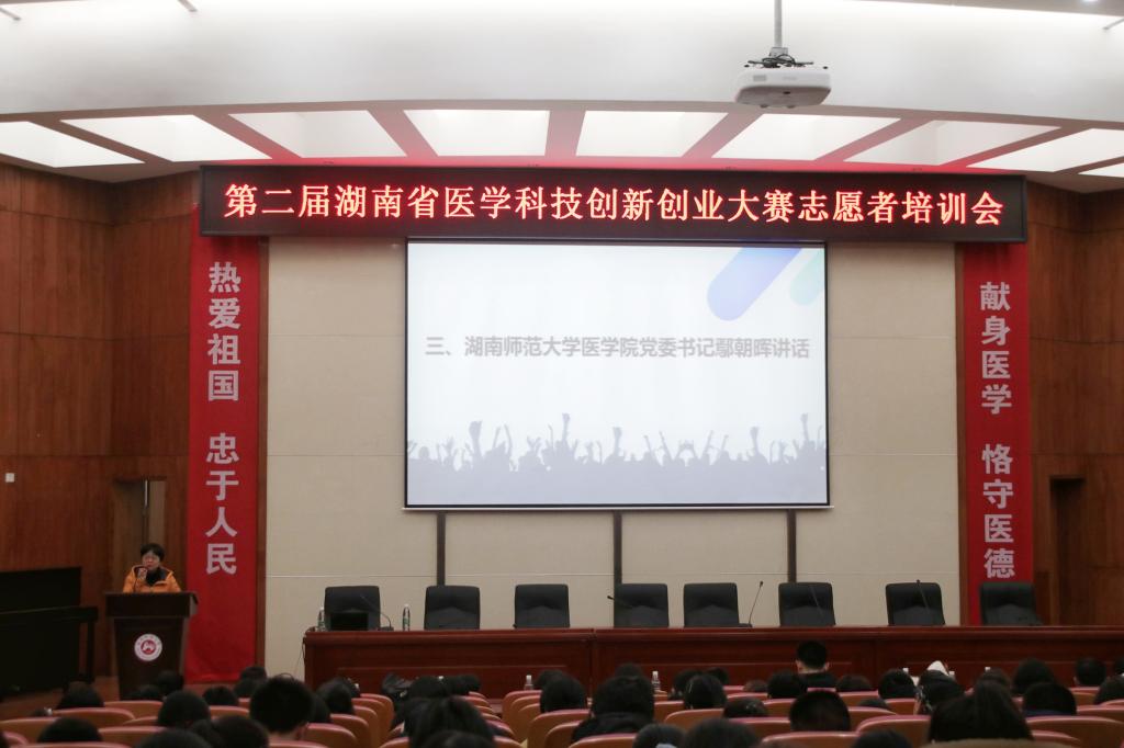 大会伊始,主持人文敏对第二届湖南省医学科技创新创业大赛进行了简单的介绍,并为大家详细解读了志愿者工作方案,帮助学生志愿者梳理大赛的各项事宜以及每个人的分工布置。其中,她重点强调了志愿者必须要熟记的四个关键点,即工作时间点、工作地点、工作内容以及负责对接的老师。随后,洪秀琴上台发言,她向志愿者们提出了三个希望:要展现自己良好的形象、要注意自己的言行举止以及要传播正能量,在志愿服务中充分展现出我院志愿者的精神风貌。最后鄢朝晖做总结发言,她对热心参与志愿服务的同学们表示衷心的感谢,鼓励同学们把本次志愿活动作为一次学习提升的机会,以高度的责任心和强烈的使命感,脚踏实地,追求卓越,展现医学生的风采,为成功举办本次大赛做出应有的贡献。
