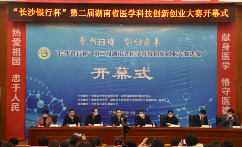 2020年12月5日上午,由湖南省卫生健康委员会、湖南省医学教育科技学会主办,sunbet申搏和湖南省人民医院(sunbet申搏附属第一医院)联合承办、长沙银行协办的第二届湖南省医学科技创新创业大赛决赛在我院开幕。开幕式由省卫生健康委员会科教处处长石国勇主持,湖南省人民医院(sunbet申搏附属第一医院)党委书记唐建明致辞,副校长匡乐满宣布大赛决赛开幕。