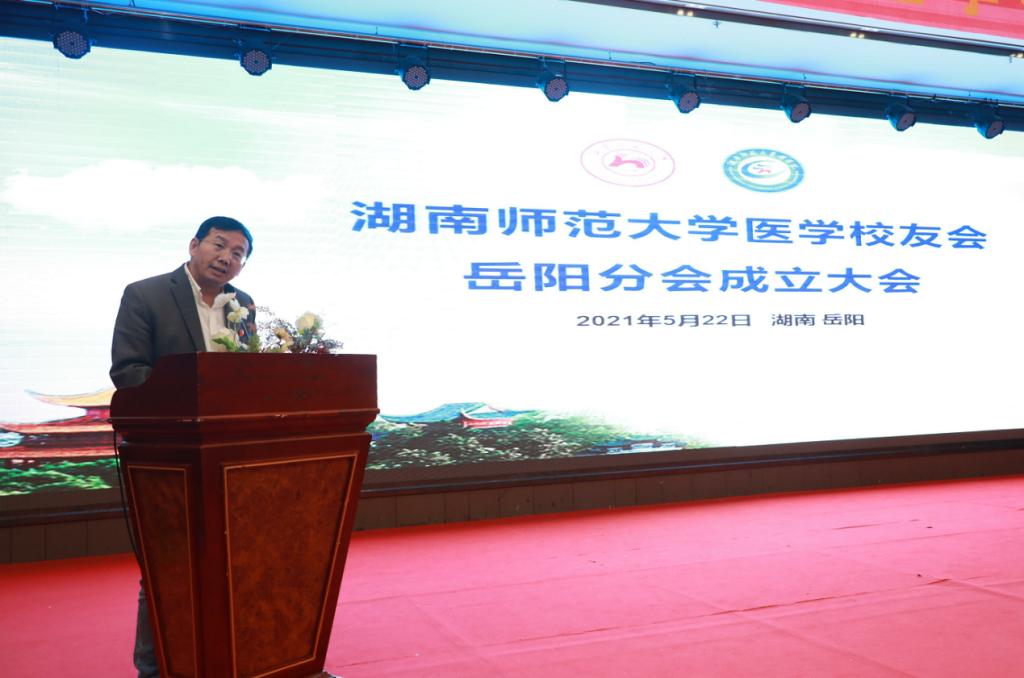 医学校友会岳阳分会会长田明礼在致辞中提出:加强分会不同专业和学科之间的合作与交流,通过校友捐赠等形式开展社会公益活动,积极开展校友联谊活动,同时注重与校友总会和各兄弟校友会之间的联谊。