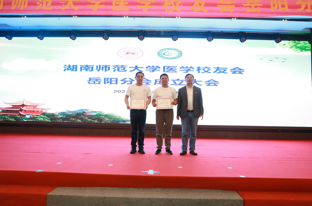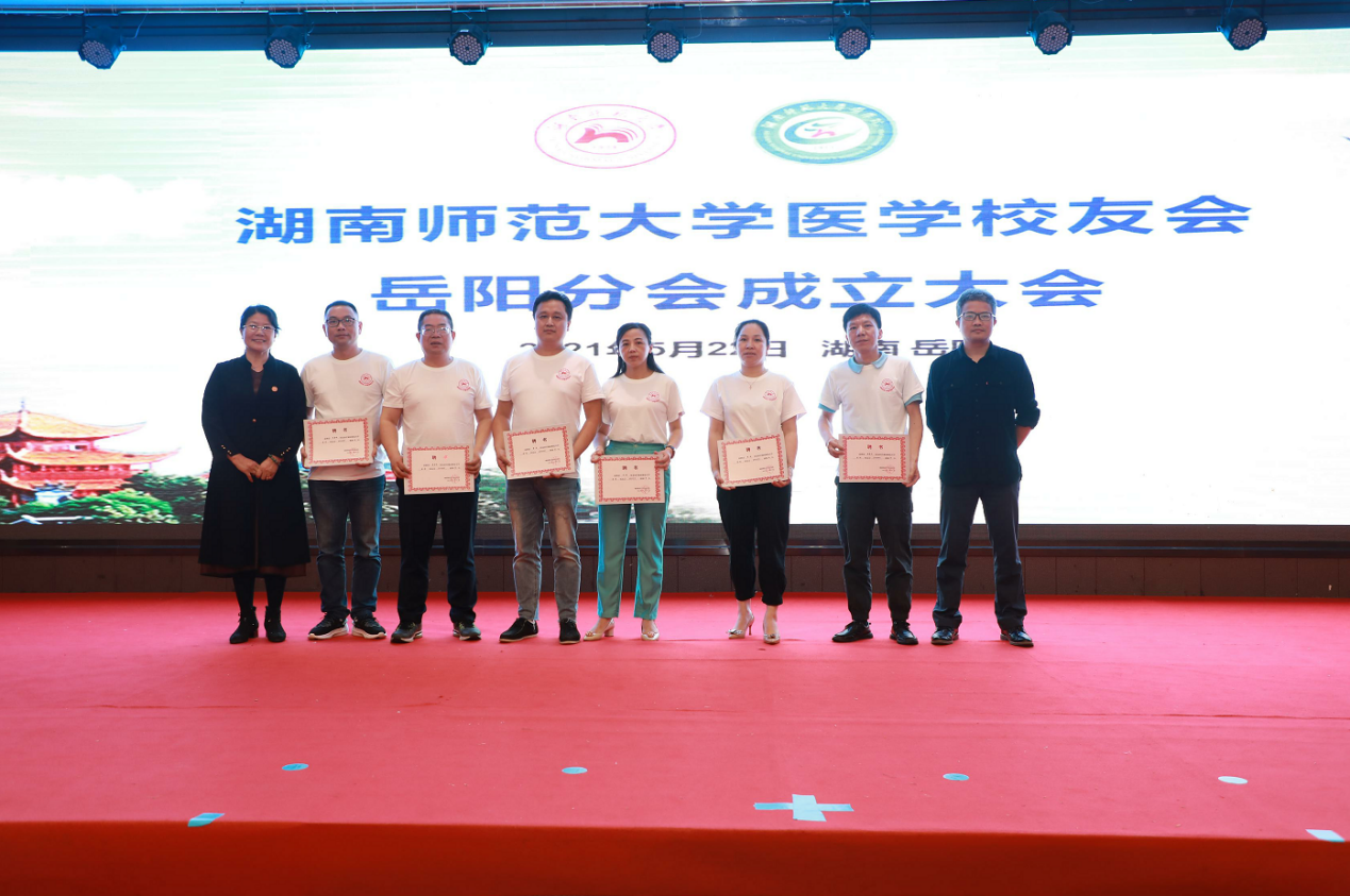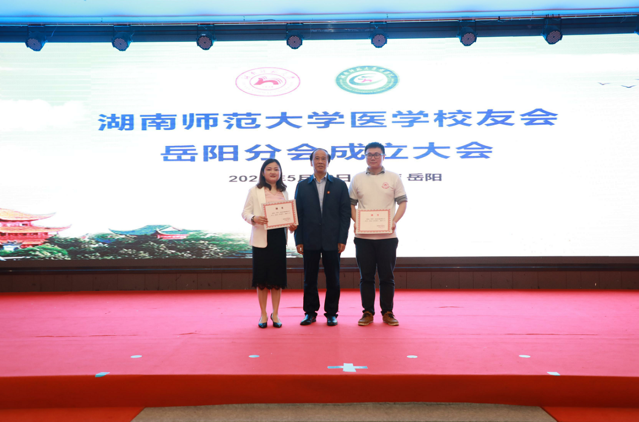 会上,医学校友会岳阳分会顾问王如松做分会筹备工作报告。李皓宣读了《关于成立湖南师大医学校友会岳阳分会的批复》。大会审议通过了《sunbet申搏医学校友会岳阳分会章程》和分会组织机构、理事人选建议名单。瞿树林向医学校友会岳阳分会授会旗。李皓、何祖平、鄢朝晖、谭伟、陈松、袁仕善、叶湘漓、向延娥等为医学校友会岳阳分会理事会成员颁发聘书。