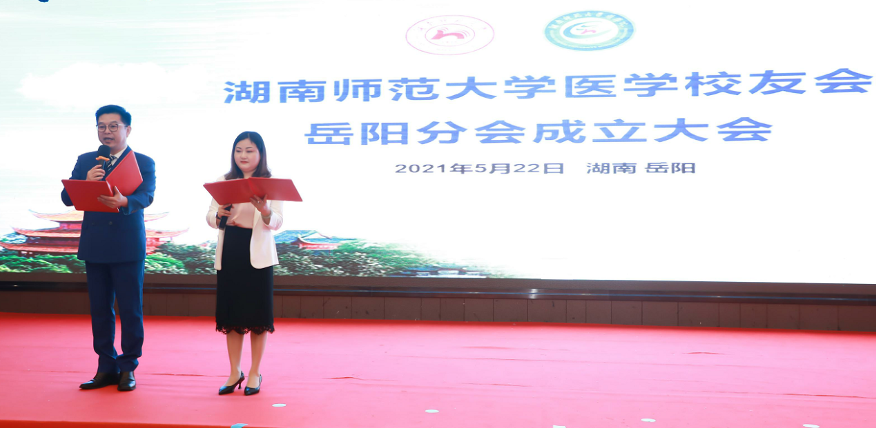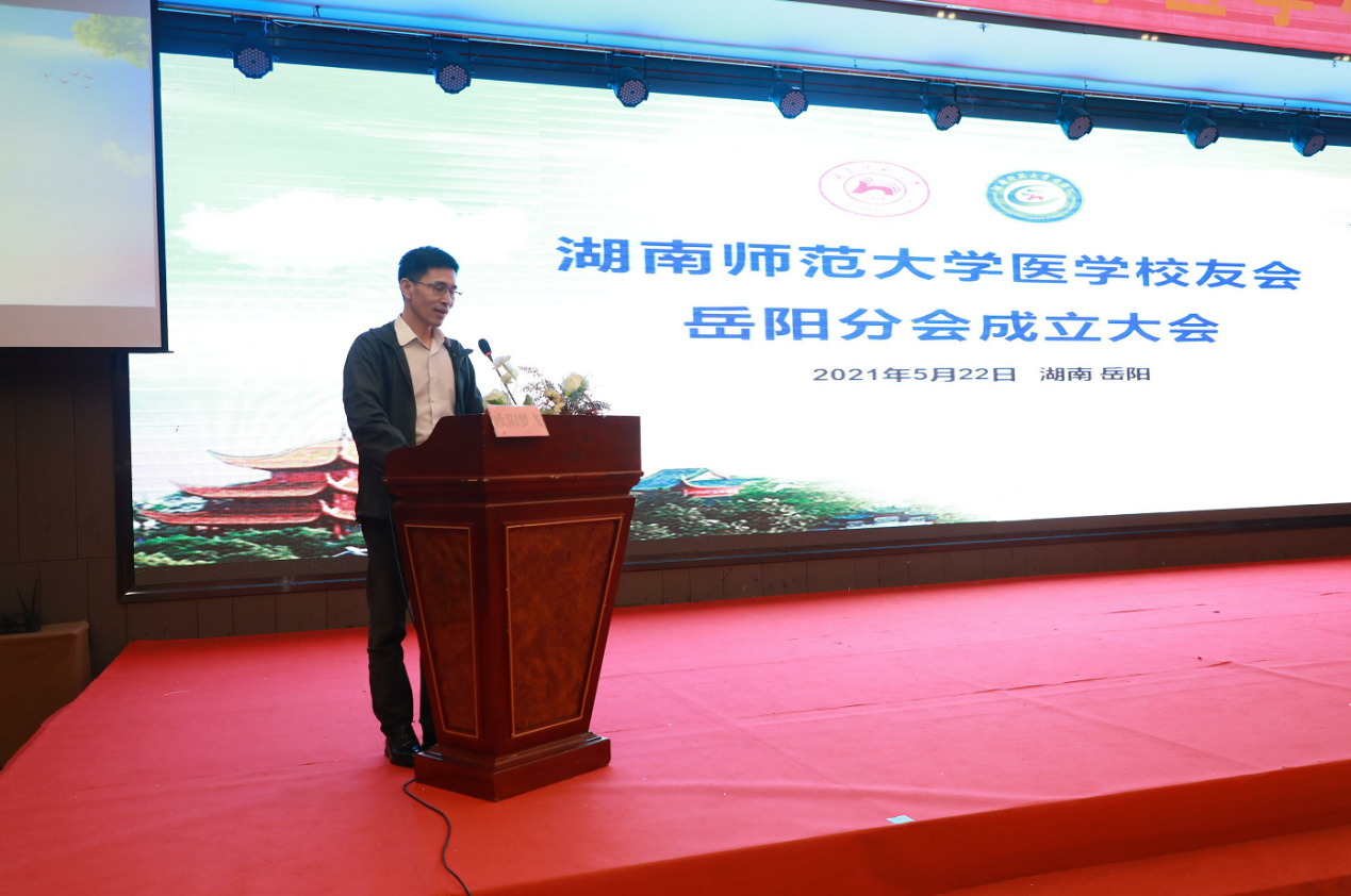 5月22日下午,我校医学校友会岳阳分会成立大会在岳阳举行。校友总会副秘书长李皓、sunbet申搏原副校长、医学校友会会长瞿树林、副会长谭伟、我院院长何祖平、党委书记鄢朝晖、党委副书记陈松、院长助理叶湘漓、分工会主席袁仕善教授、行政办主任向延娥等出席成立大会。大会由岳阳分会秘书长李慧敏和王坚主持。