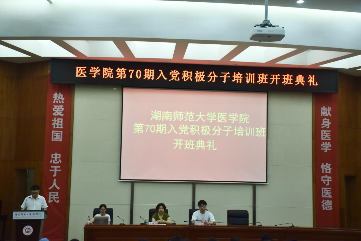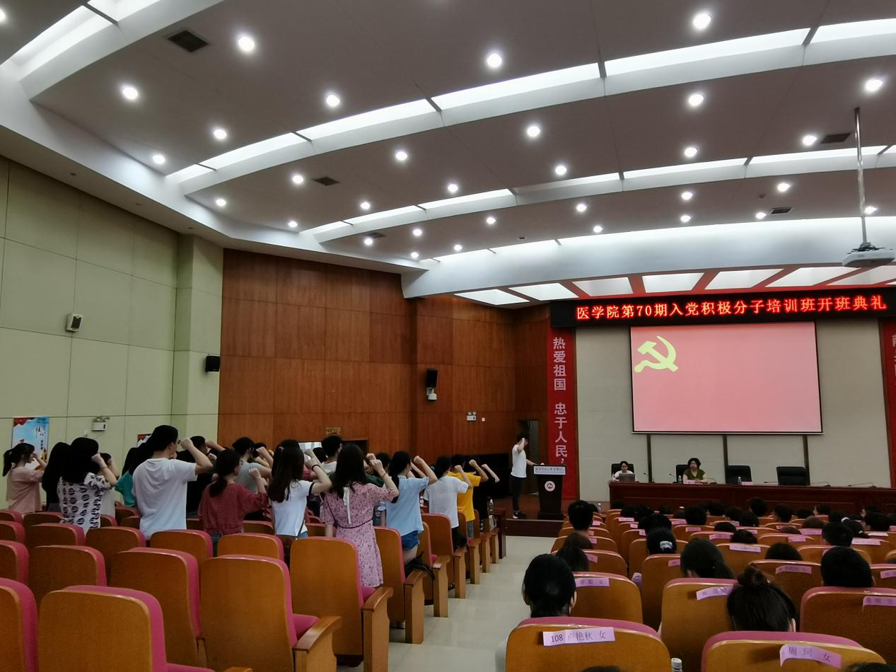 2021年5月15日上午,我院分党校在仁医楼学术报告厅举行第70期入党积极分子培训班开班典礼。典礼由我院学工办罗宇涛主持,学工办主任张晓红、2017级党员代表沈立以及我院全体预备党员及入党积极分子参加此次典礼。