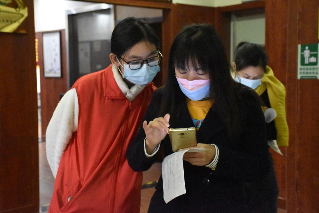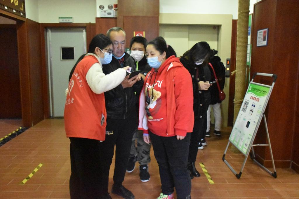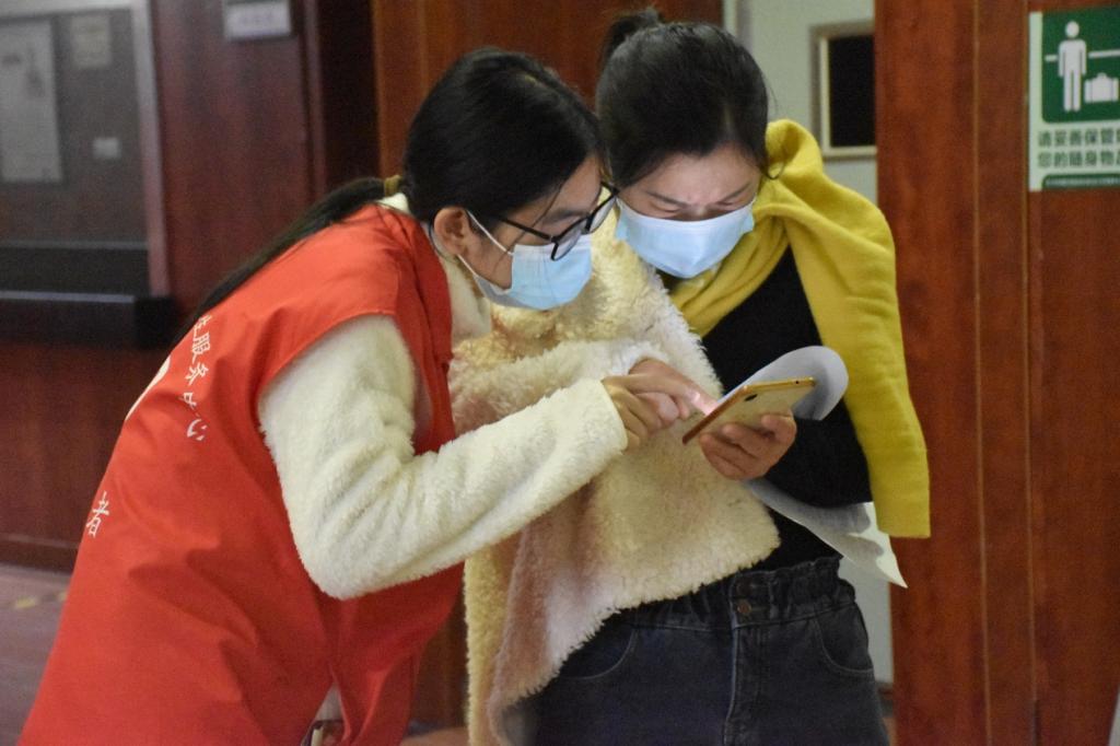 志愿者们每四人一个小组,每个小组负责半天的志愿协助活动。社区医院的医务工作者为志愿者分发志愿工作服并分配好任务,其中两人负责医院入口处的安全工作,两人负责医院四楼新冠疫苗接种的相关工作。