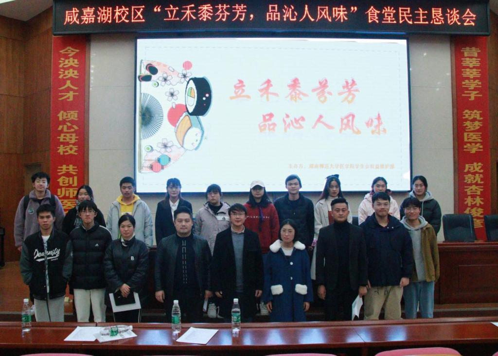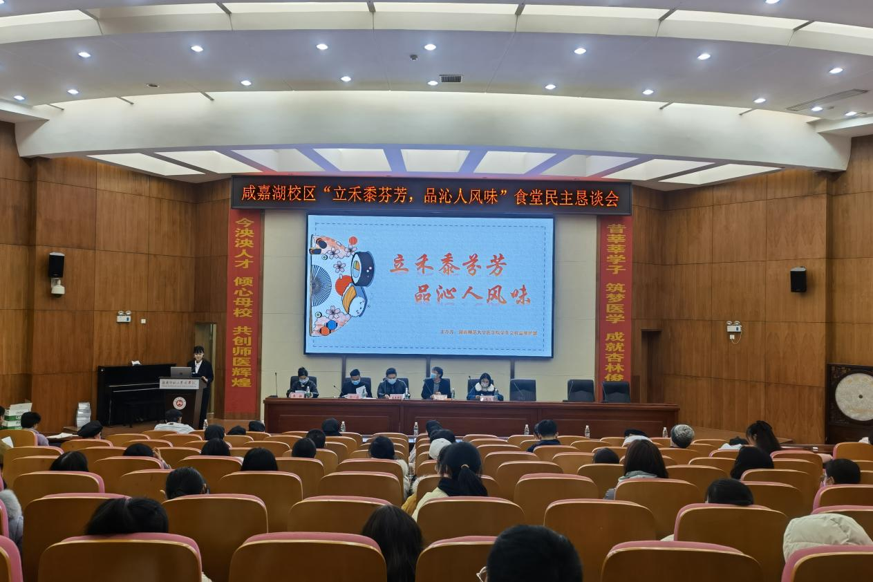 12月17日晚,我院学生会权益维护部于仁医楼学术报告厅举办了“立禾黍芬芳 品沁人风味”咸嘉湖校区食堂民主食品恳谈会。咸嘉湖校区后勤服务中心副主任刘洪良,餐饮监管部负责人廖止春,餐饮监管部吴枝岚,路文军,食堂老板周一品,朱李梦真,食堂经理许小波,食堂主管李珊,校权益部部长李彤,校学生会分管主席唐俪玲,院学生会主席团邓云帆、郭小勇和刘宇菲以及特色食堂各档口代表,各班级学生代表参加了此次会议。