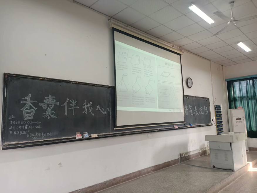 为进一步了解香囊文化,提高同学们的动手能力,我院学生社团管理服务中心墨轩书画协会于11月15日下午在勤医楼七教室举行“香囊伴我心,香气永流传”活动。