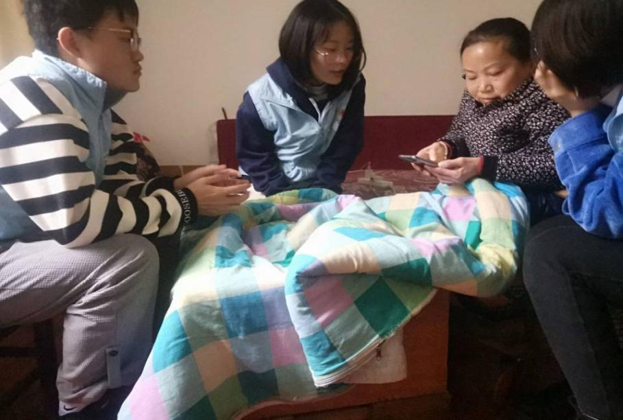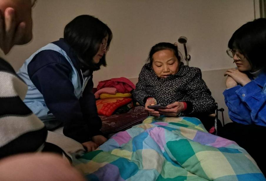 告别梓洋弟弟后,志愿者们来到了李奶奶家中。志愿者的到来,让李奶奶家中充满了欢声笑语,李奶奶也瞬间有了精气神。围坐一圈,志愿者们和李奶奶聊天,陪她唠一些家长里短——“年过得怎么样啊”,“最近身体怎么样”。另外,志愿者们还教了李奶奶怎样使用智能手机,让奶奶能用手机获取外界信息、与亲朋好友聊天。最后,志愿者们对李奶奶的房间进行了大扫除。