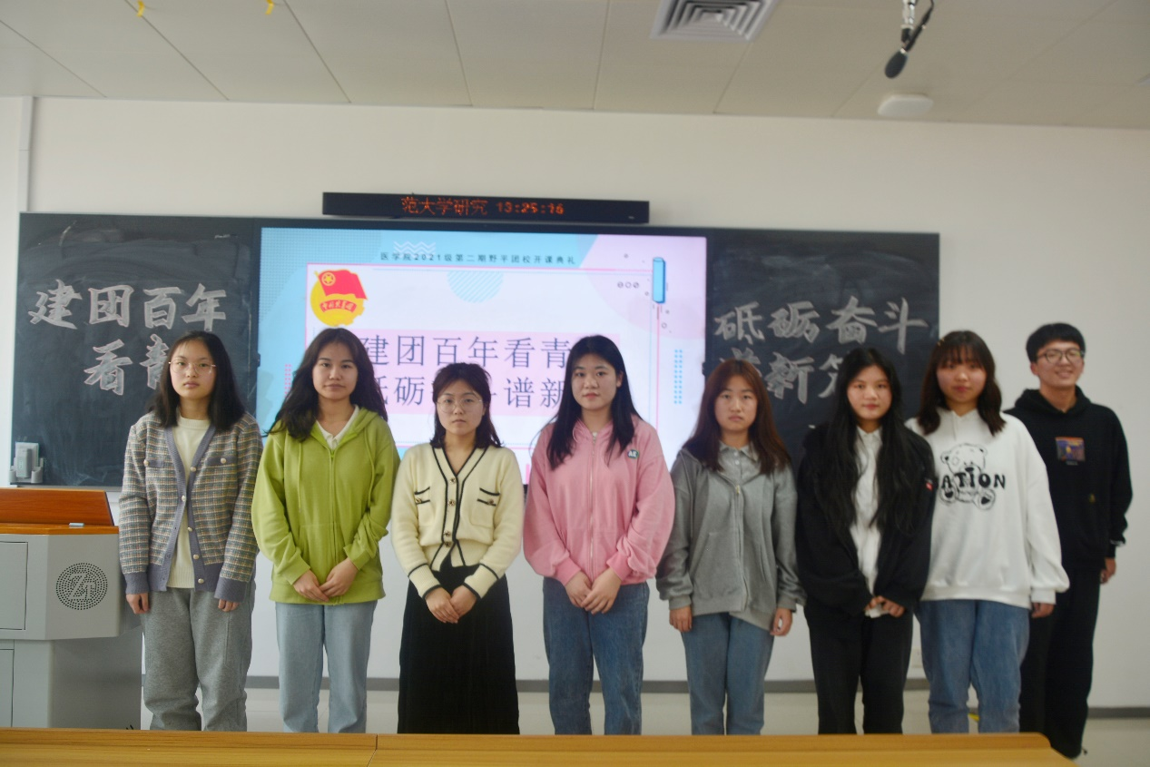 3月11日中午,我院团委青年发展工作部于综合楼302教室举办2021级第二期野平团校“建团百年看青年,励志奋斗谱新篇”主题团课暨开课典礼。此次团课由21级树达护理班的刘绮雯主持,邀请到了我院学生会指导老师郜江洪主讲,2021级野平团校理论班的全体同学参加此次团课。