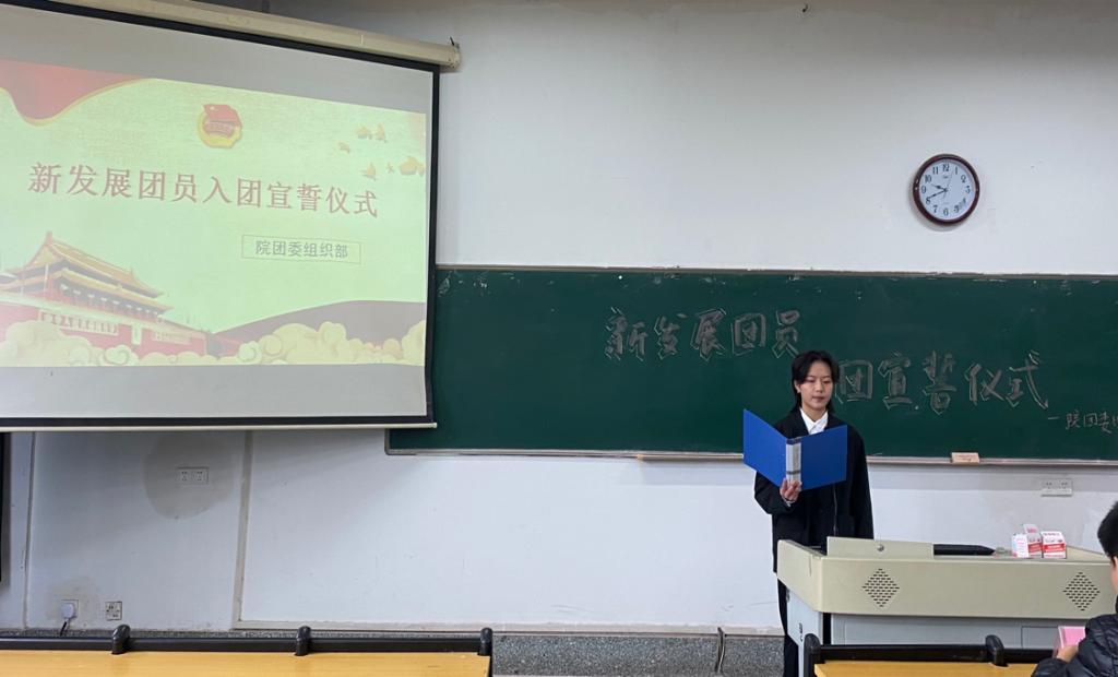 新发展团员按照《团章》要求进行宣誓。宣誓结束后,李东源作为优秀团员发言,分享了自己与团组织共进步的成长经历,鼓励新团员们积极进取。新发展团员代表田易弘在发言中说道,在入团之后,将更加严格地要求自己,做有理想有信念、敢奋斗勇担当的新时代青年。最后,伴随着团歌,此次会议结束。