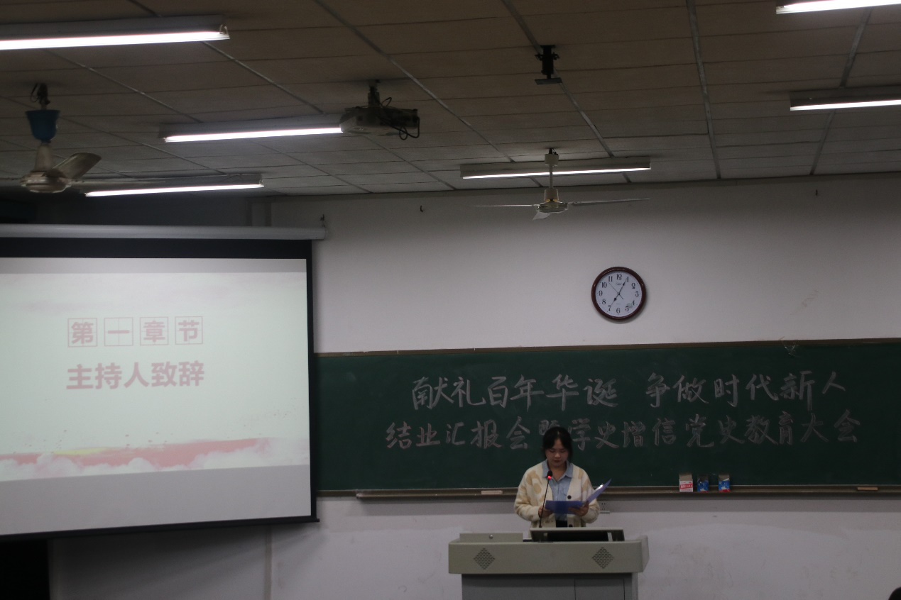 本次汇报会共有13位同学进行汇报,他们通过回顾本学期野平团校课程,向野平团校成员展现了他们的学习成果与感受,并表达了自己对往后学习的期望与要求。其中,20级预防班吴启萍在汇报中在“征途漫漫,惟有奋斗”板块中结合百年党史,表达了对党百年华诞的衷心祝福与美好祝愿。