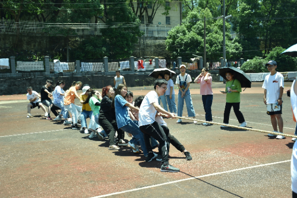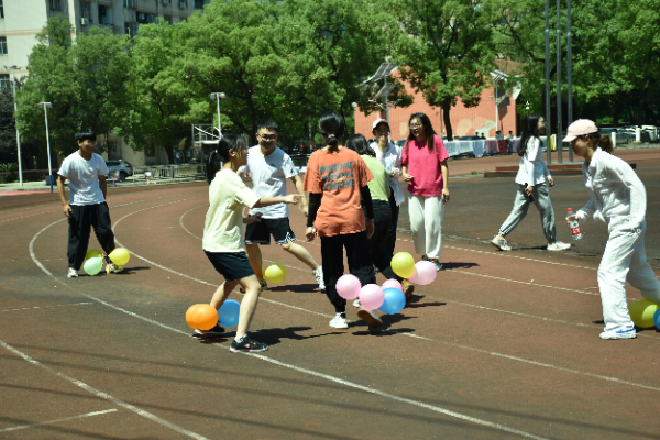 上午十点的田径场,晴空万里,阳光灿烂。活动伊始,全体拍摄大合照。裁判向大家介绍了各个比赛项目及其规则,各参赛队伍以班级为单位在指定地点准备就绪,随后开始了正式的比赛。本次比赛共设五人接力、气球大战、飞盘投网、定点投篮、平衡乒乓、八人七足和拔河七个板块。每个项目同学们都十分投入,精诚合作,竞争十分激烈。接力赛里的默契配合,气球大战里的紧张刺激,飞盘、投篮和夹乒乓球里的精准控制,八人七足和拔河里的齐心协力。比赛现场,掌声、笑声和观众们的加油呐喊声,此起彼伏。场上场下互动交流,相互调侃,笑容洋溢在每一个人的脸上,整个比赛过程充满了欢乐祥和的气氛。最后由活动组织方为获奖的参赛选手颁发了精美的小礼品。