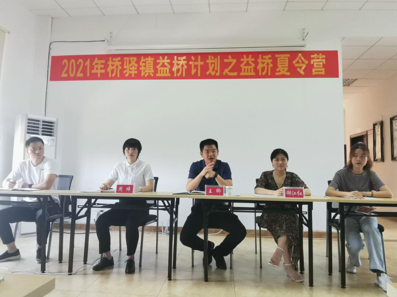 随后,周玮对参加夏令营的全体志愿者表示热烈的欢迎。同时在会议中该项目的工作人员表示感谢。她强调益桥夏令营是桥驿镇开办的第一个特色项目,并就此次活动对大家提出四点希望。一是希望搭建桥驿中小学生与社会各界力量的桥梁。二是希望桥驿镇本地的小朋友们能够在此次活动中玩的开心,学的开心,学有所获。三是希望大家能够提高安全意识,安全第一。四是希望三下乡社会实践团志愿者在此次活动过程中收获友谊,并能够对桥驿镇乡村振兴提出宝贵意见,建言献策。