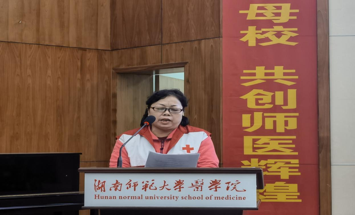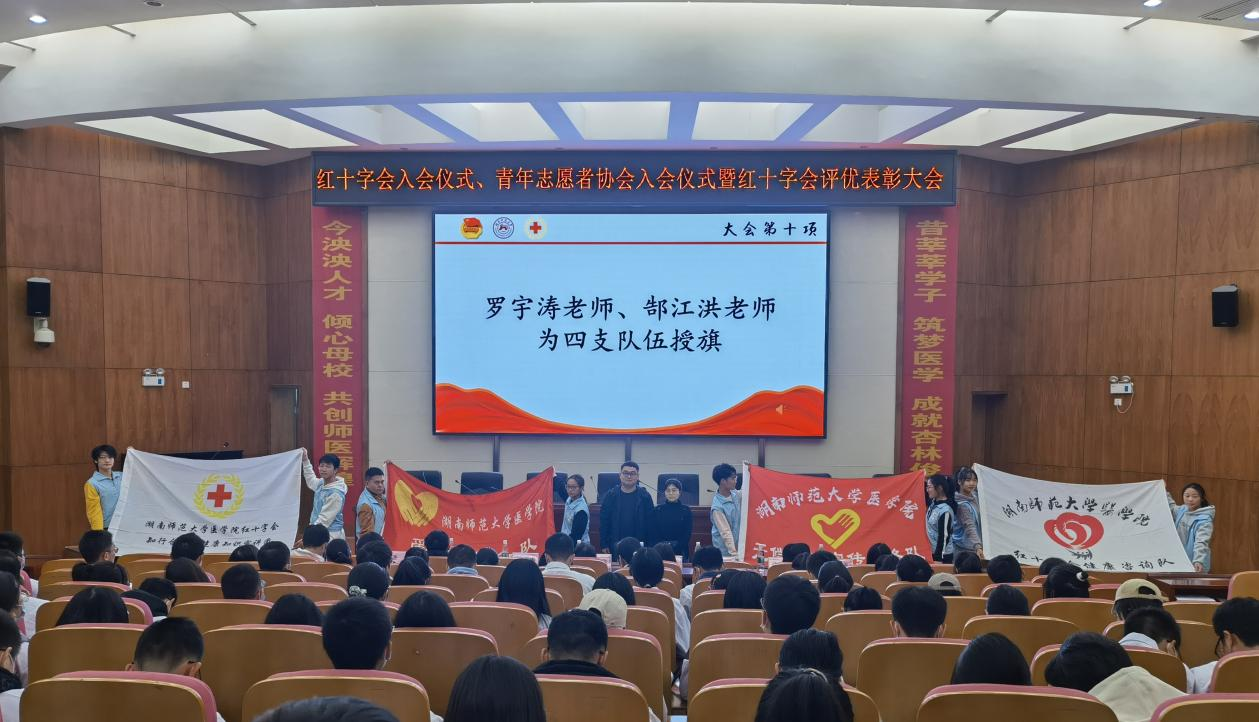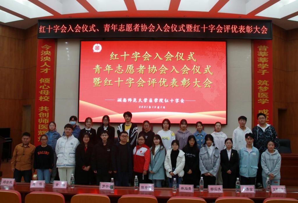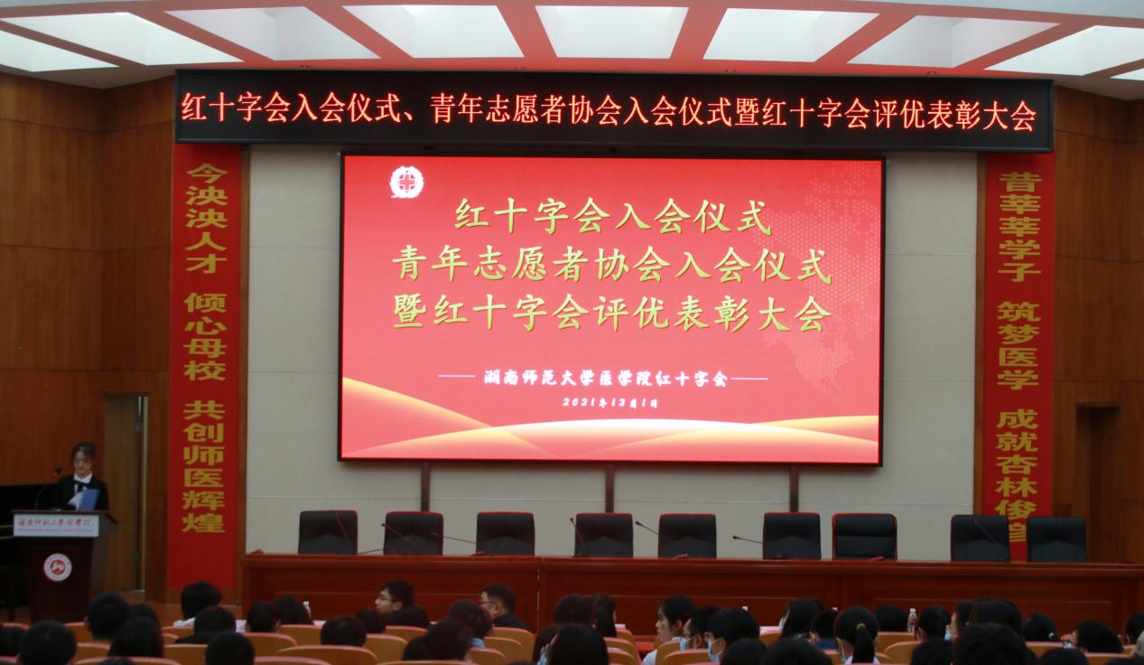 12月1日中午,由我院团委青年志愿者工作部组织的红十字会入会仪式、青年志愿者协会入会仪式暨红十字会评优表彰大会在仁医楼学术报告厅举行。长沙市红十字志愿服务队副理事长陈世明、院青年传媒中心指老师罗宇涛,学生会指导老师郜江洪、学生社团管理服务中心指导老师林灿英以及院四大团学系统执行负责人出席此次活动,21级部分新生参加了此次活动。