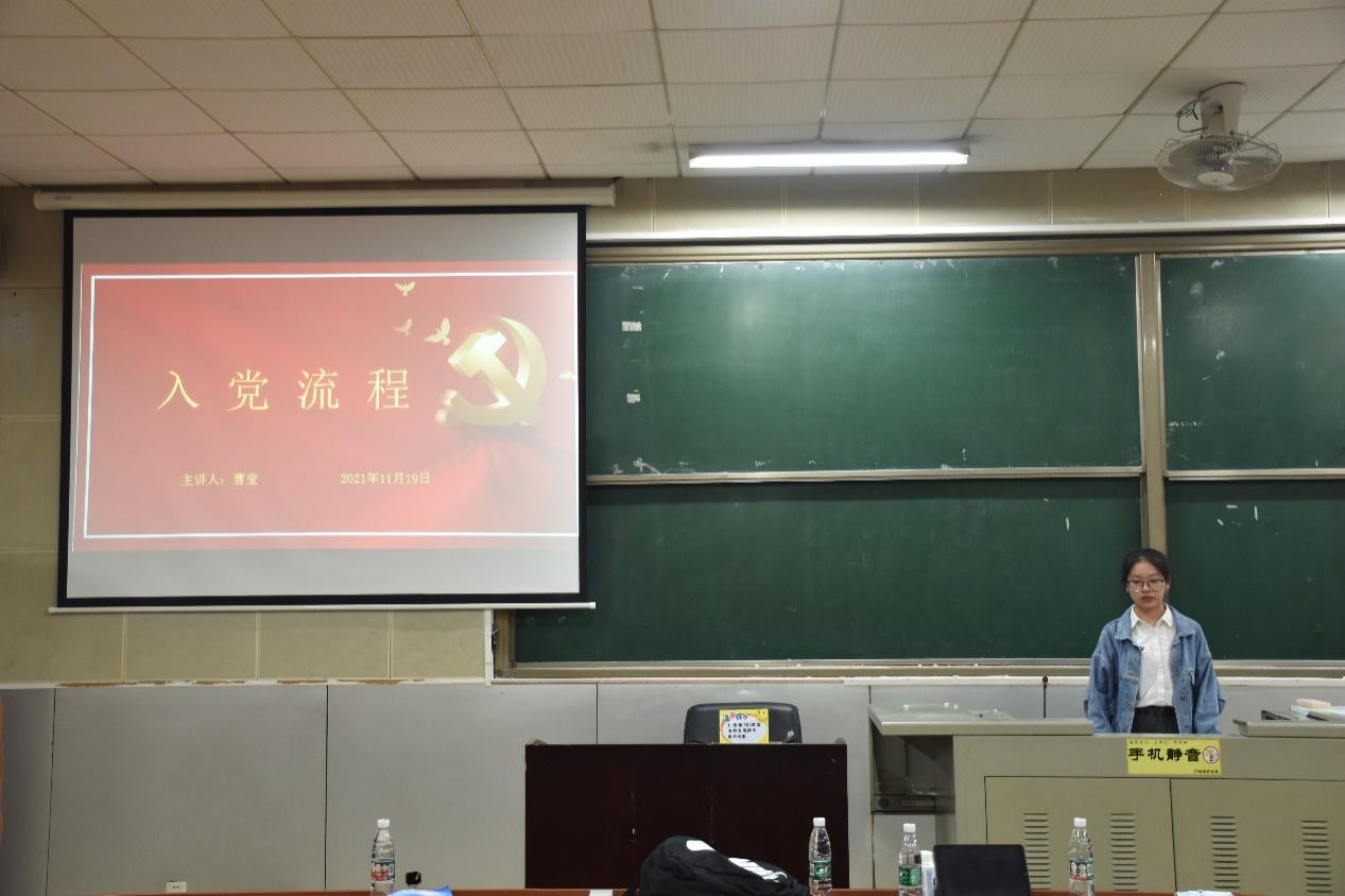 11月19日晚,我院团委青年发展工作部于仁医楼306教室组织举办“知入党流程,树党员意识—争做入党先锋”主题团课。此次团课的主讲人为20级党委办学生助理周慧琳和曹莹,主持人为青年发展工作部志愿者田恩情。2021级野平团校理论班全体学员参与此次团课学习。