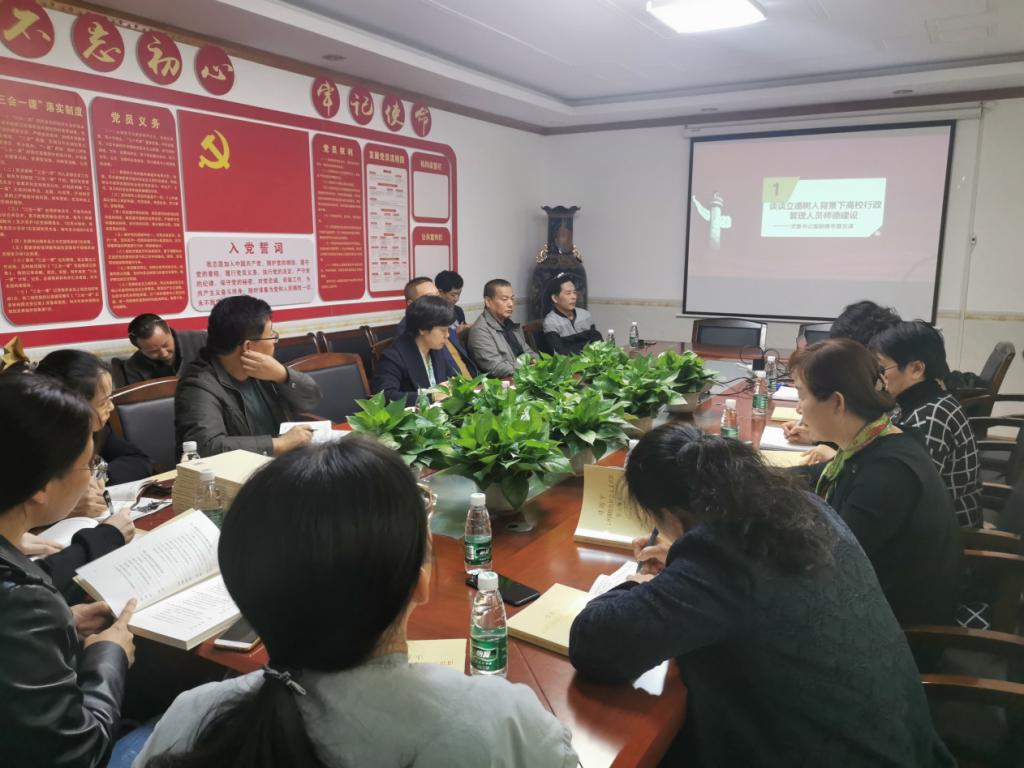 10月下旬,我院党委书记鄢朝晖为全体行政人员主讲了题为《谈谈立德树人背景下高校行政管理人员师德建设》的主题教育专题党课。党课由行政党支部书记文敏主持。