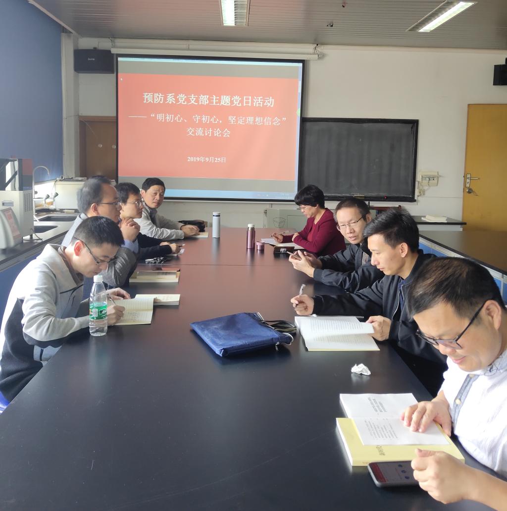 2019年10月18日,按照学院“不忘初心、牢记使命”主题教育工作安排,我院党委书记鄢朝晖及预防支部书记刘桃成分别为预防系党支部上专题党课,随后,预防系党支部开展“明初心,守初心,坚定理想信念”主题党日活动。会议由支部书记刘桃成主持,支部全体党员参加。