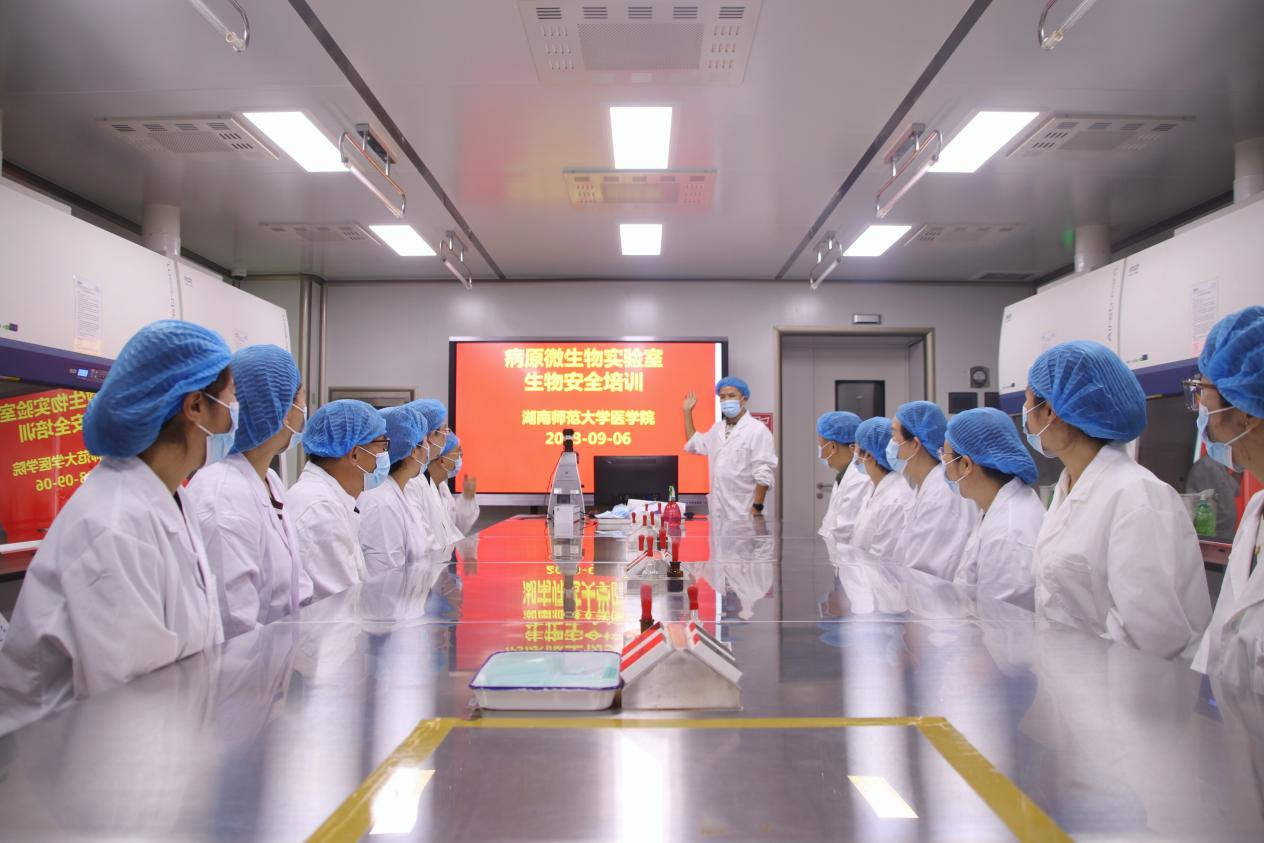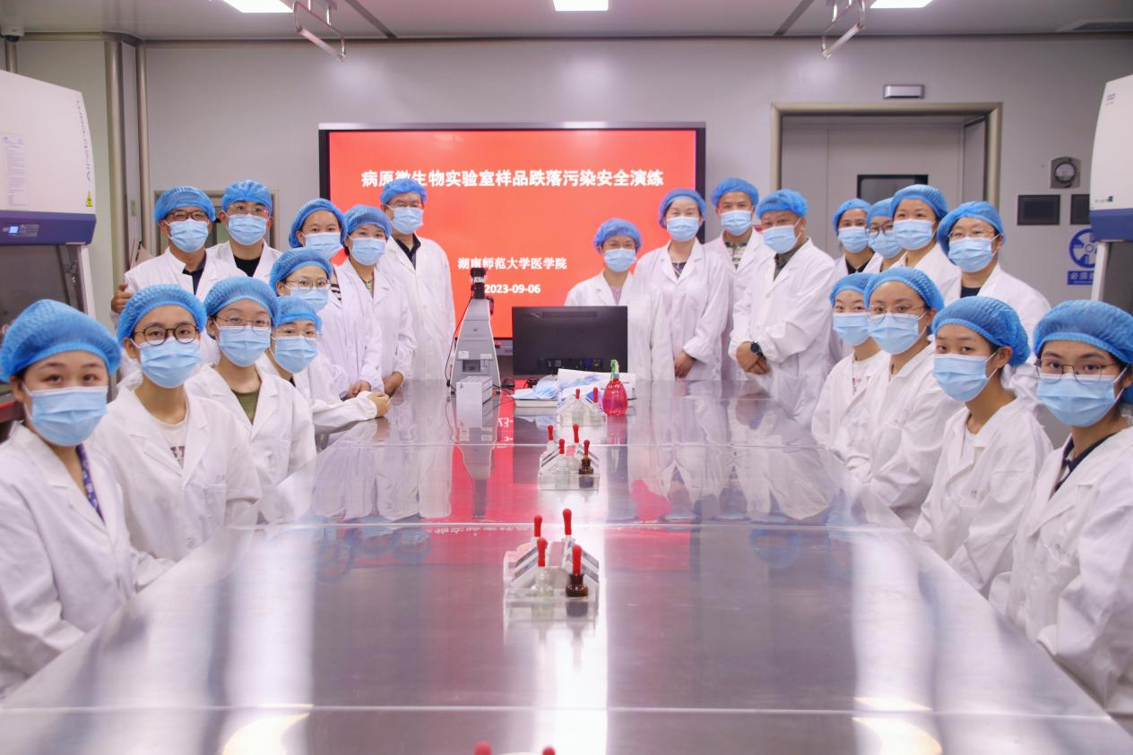 为强化我院病原微生物实验室(P2实验室)的规范和管理,增强师生的生物安全意识以及应对各种生物安全突发情况的处理能力,9月6日,我院举行了病原微生物实验室生物安全培训及演练。院党委书记鄢朝晖、副院长李玉飞、副院长邓文艳及医学检验系和实验中心相关老师参加了培训和演练。