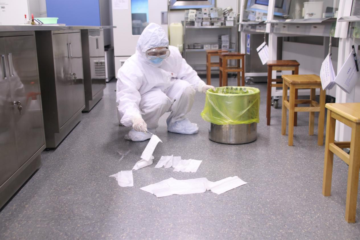 下午在P2实验室专门进行了实验室样品跌落污染的安全演练。演练针对学生在操作细菌接种培养过程突发培养皿跌落地面的事故模拟展开。参演同学在培养皿跌落后,迅速进行局部消毒、关闭通风系统、报告老师、准确说明情况、全员撤离、救援等行动。演练结束,叶湘漓教授结合日常教学经验及实验情况进行活动总结。