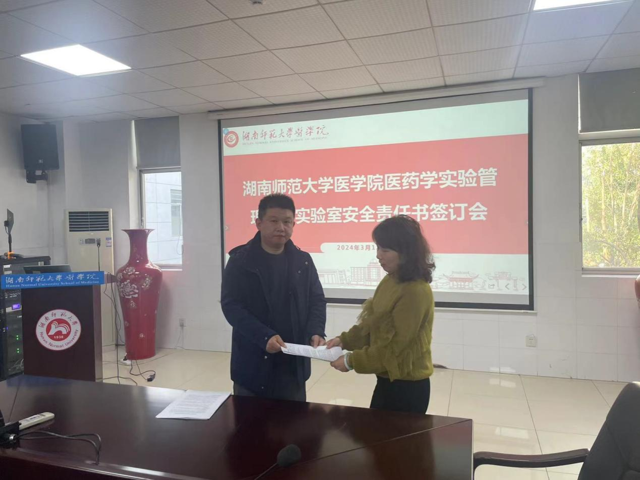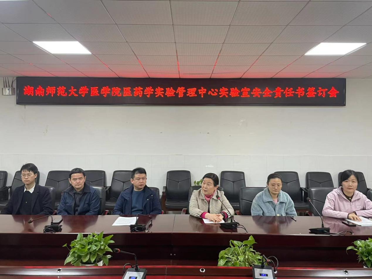 3月12日上午,我院医药学实验管理中心组织召开了安全责任书签订大会。会议由实验中心主任邹辉主持,副院长邓文艳,中心副主任杨智、任凯群,中心支部书记全梅芳以及中心实验全体教师参加了会议。