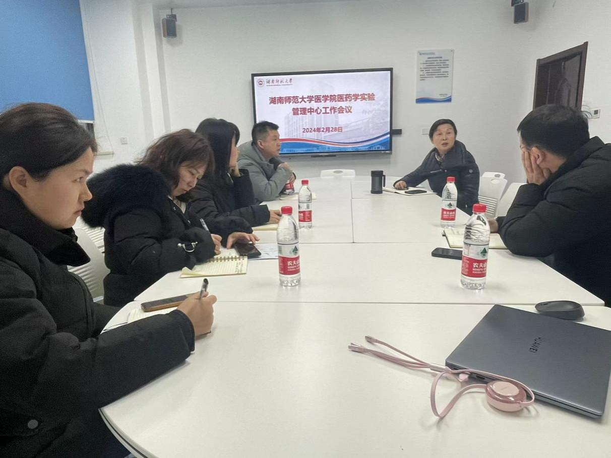 2024年2月28日下午,我院医药学实验管理中心组织召开了新学期实验室工作会议。会议由副院长邓文艳主持,中心主任邹辉,副主任杨智,任凯群,党支部书记全梅芳以及实验室管理相关成员参加了会议。