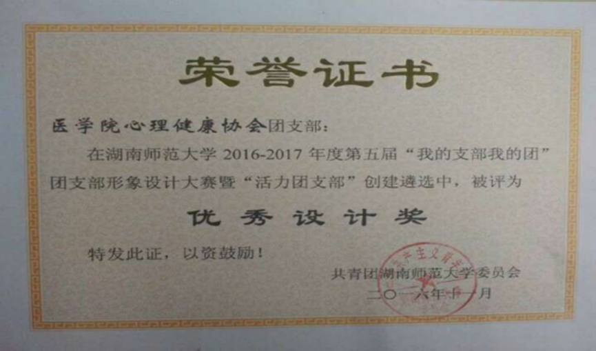 3.心理健康协会于2016-2017年第五届“我的支部我的团”团支部形象设计大赛暨“活力团支部”创建遴选中荣获“优秀设计奖”。