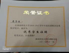 6.医学社于sunbet申搏2016-2017学年年度社团联合会系统评优中荣获“优秀学生社团”。