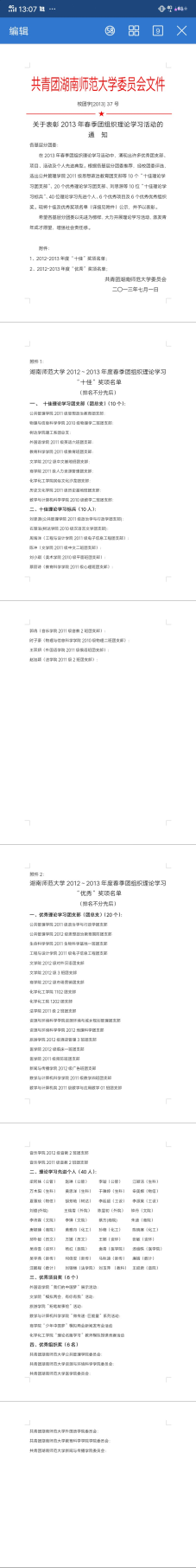 1.宣传部获2013年春季理论学习活动优秀组织奖
