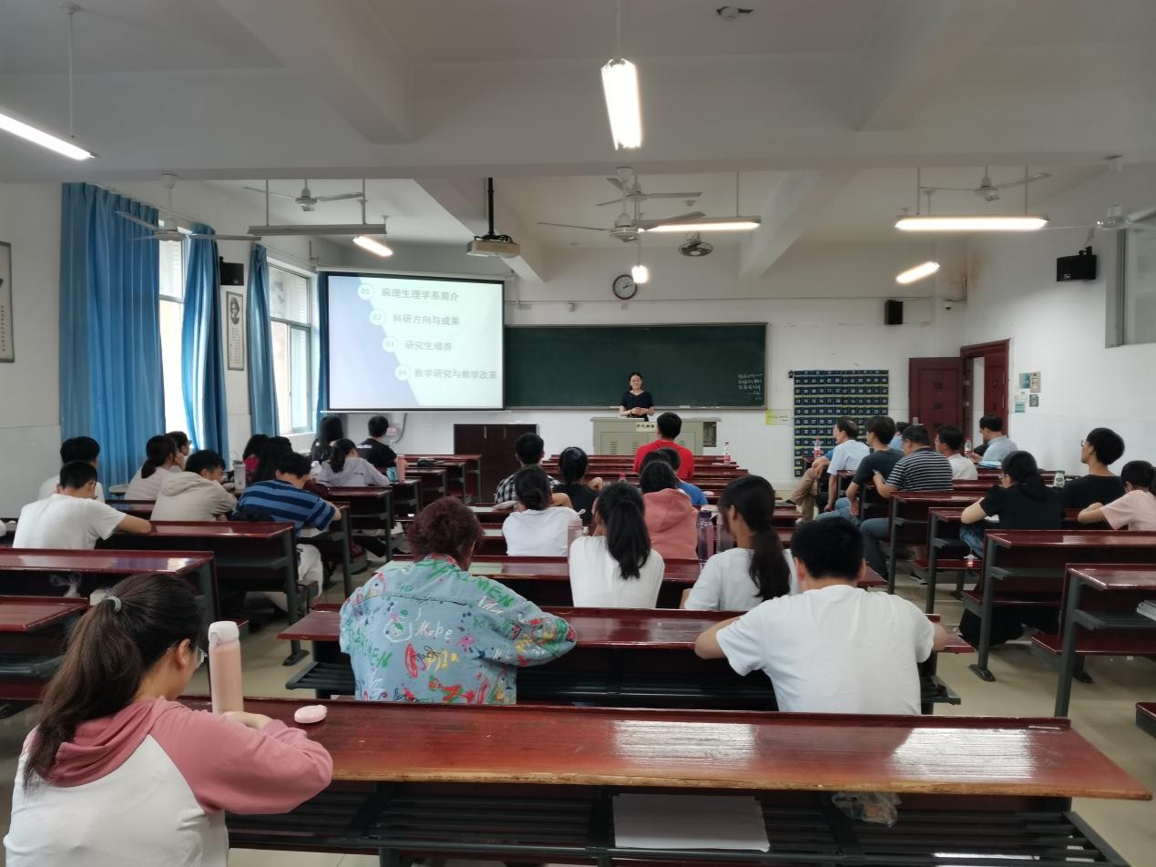 在会议过程中,熊炜从技术平台、历史发展、科研团队等方面对中南大学基础医学院和肿瘤研究所进行了详细的介绍。张华莉、马健与周勇分别重点介绍了中南大学的病理生理学专业、肿瘤研究方向与生理学专业,学生认真地做笔记,秩序井然。会议最后,教授们就学生关心的夏令营、报考分析等问题进行了详细解答,鼓励学生在本科时期增强动手与研究能力,培养科研兴趣,提升核心竞争力。