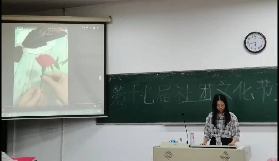 此次活动由20级树临一班王辰雨担任主持人,活动前期,社团理事会与监事会召开会议,确定相关工作人员安排,并在活动开始的三天前进行海报,说说宣传,同时联系活动监察人员对此次活动进行监察。活动中期由工作人员提前布置现场,在黑板上写下本次大会名称。活动开始时邀请会员入场就坐,主持人组织好开场宣布活动开始,进行PPT宣讲并发放材料,带领会员进行康乃馨手工制作。活动结束后工作人员留下清理卫生并进行合影。
