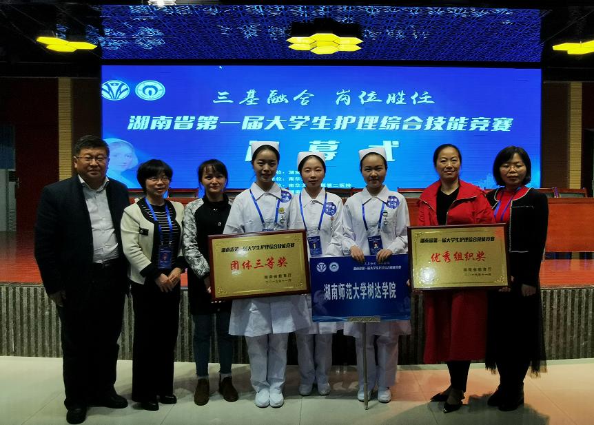 11月24日,由湖南省教育厅主办、南华大学承办的“湖南省第一届大学生护理综合技能竞赛”在南华大学附属第二医院举行,我校医学院护理系、树达学院医学系组队代表学校参赛。中华护理学会教育专业委员会主任委员姜小鹰担任总裁判长,湖南省教育厅高教处处长曾力勤、副处长曾思亮,湖南省卫健委科教处处长石国勇,南华大学副校长刘升学、姜志胜出席闭幕式并为获奖团体及选手进行颁奖。