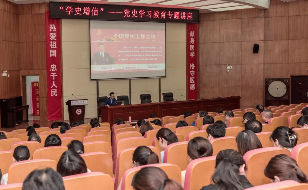 4月22日下午,我院在仁医楼报告厅举行“学史增信”党史学习教育专题报告会,全体教职工和学生党员到会听取了马克思主义学院教授、博士生导师陈德祥讲座“中国共产党百年奋斗历程和伟大贡献”,院党委书记鄢朝晖主持报告会。