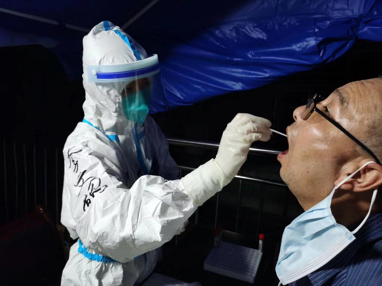 “我们身穿防护服在移动负压核酸检测车里日以继夜的工作,酷暑难耐,汗水湿透了衣服,双手被汗水浸泡得发白,但大家没有任何的抱怨和迟疑,心中只有一个目标,那就是尽快完成检测任务,早日控制疫情蔓延。”