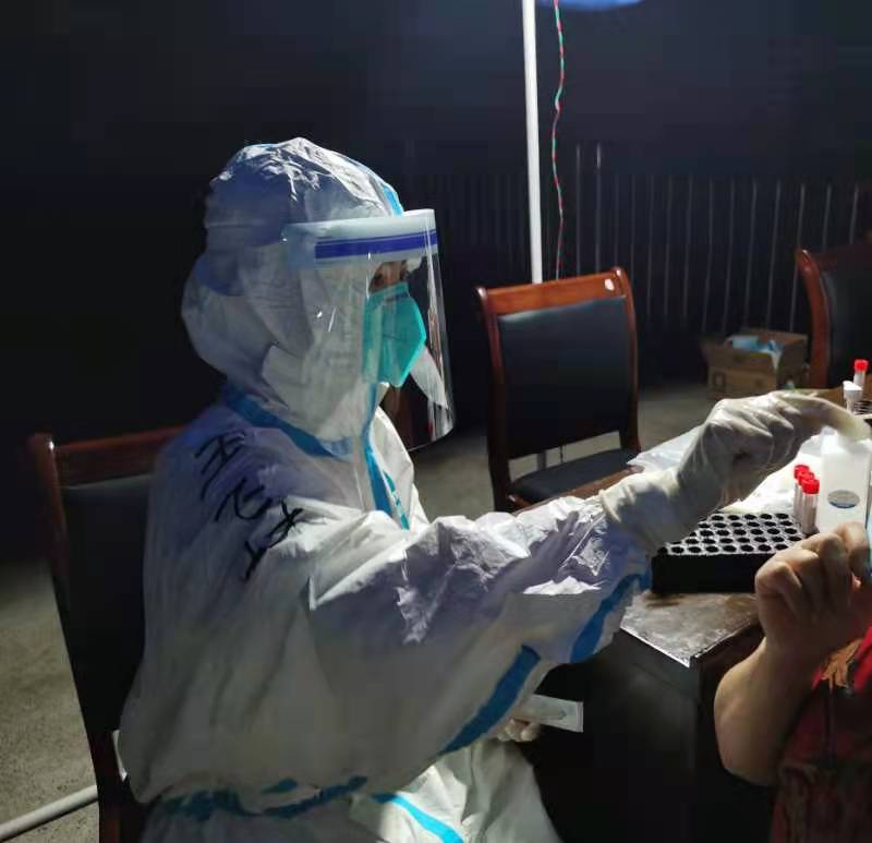负责桑植县全员核酸检测,在乡镇进行咽拭子采集,穿防护服坚持数小时,不断接触那些高危人群,无论从心里,还是生理上,压力都是倍增的。但是她们仍坚持在自己的岗位上。