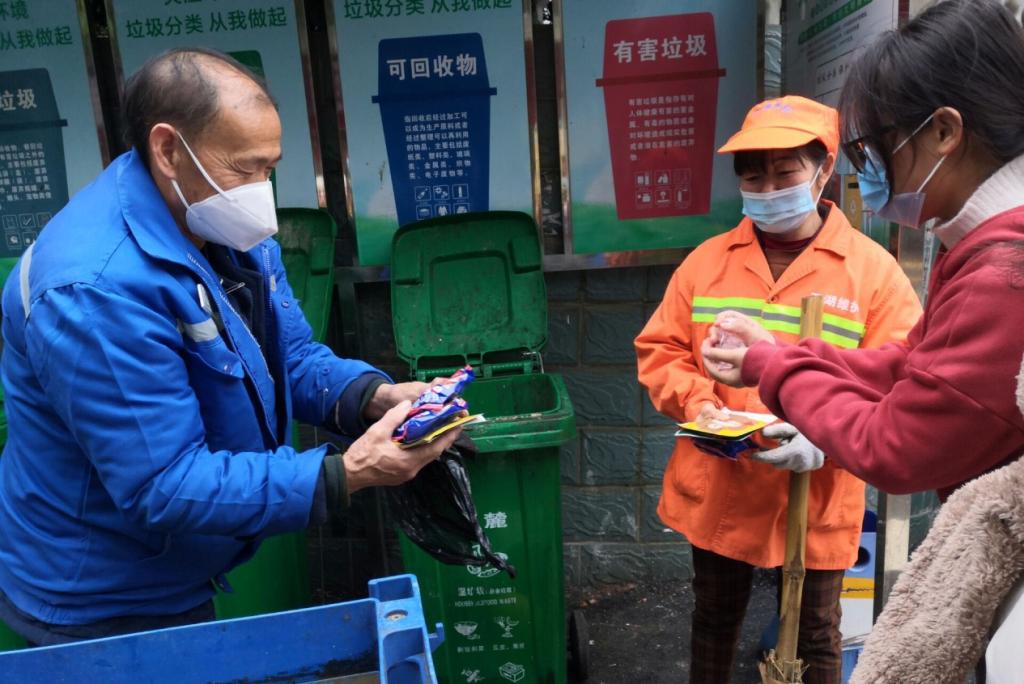 去到后门的志愿者们先是来到了湖南省胸科医院附近,一路上,志愿者们碰到了许多奋斗在工作岗位的环卫工人。他们有的正在打扫街道卫生,有的在将垃圾分类整理。