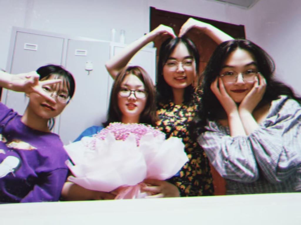 缘分,让素昧平生的她们同住一个屋檐下,开始朝夕相处的生活,一年多的寝室生活中,没有争吵、没有猜忌,每个人都用快乐与真诚相待彼此,这一年的陪伴,对于寝室的每一个人而言都是生命里的一个惊喜。一起答疑解惑、相互鼓劲,互相支持,在这一年里,四个女孩不一样的性格书写了不一样的精彩,都为自己的五年青春提交了一份满意的答卷。现在的四人中,三人保研成功,余下一人也考研成功。
