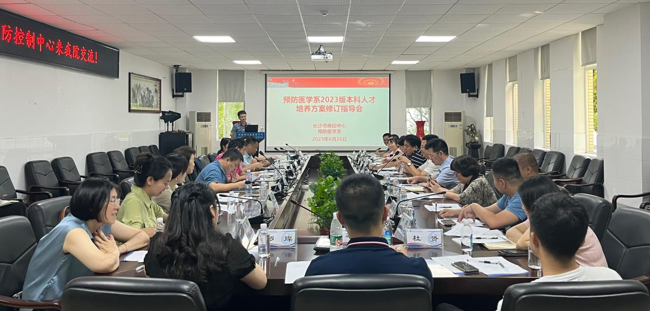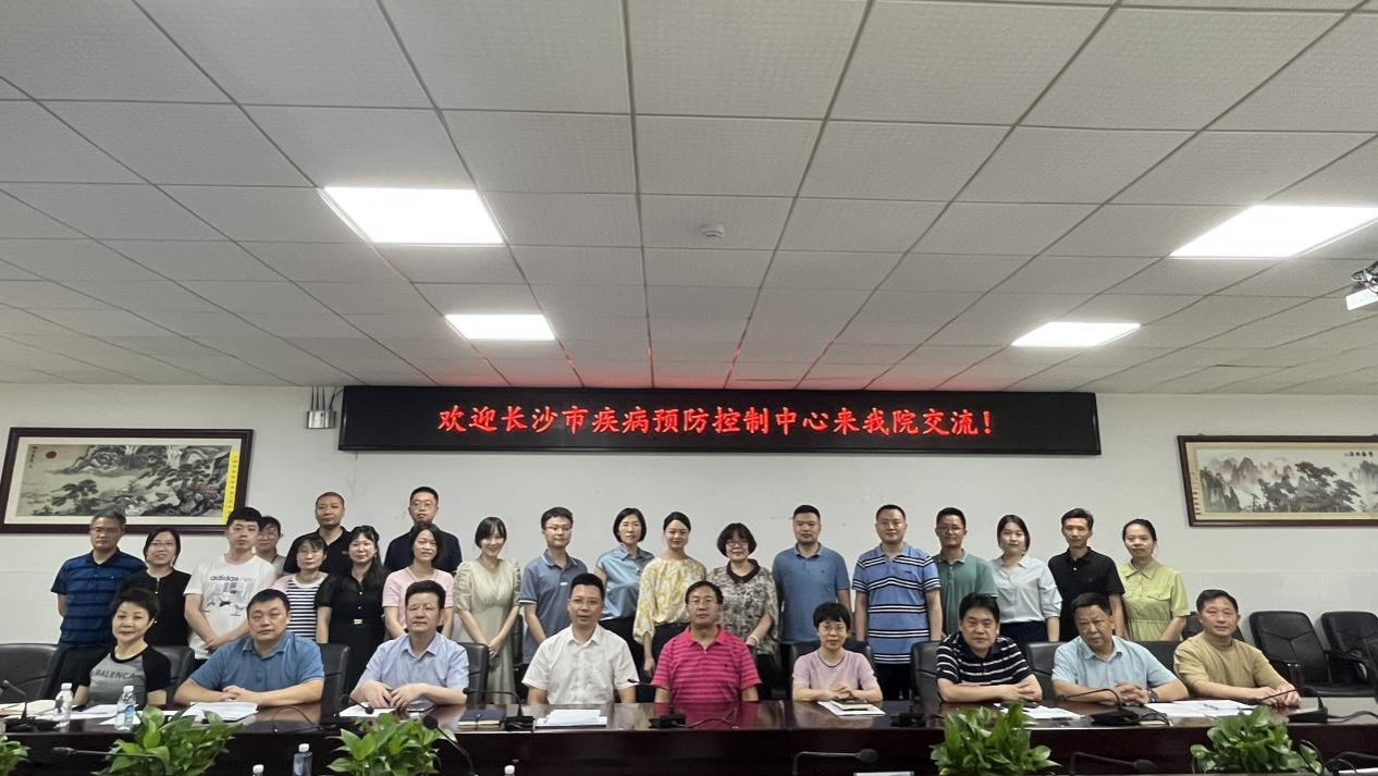 2023年6月26日下午,长沙市疾病预防控制中心党委副书记、主任杨学文,副主任徐明忠、李杰,中心科室负责人彭芳、欧新华、李继猛、胡骢、陈静芳、张恒、田斌、黄霜及科研骨干一行15人来我院交流。交流会在仁医楼207会议室举行。我院院长何祖平、党委书记鄢朝晖、副院长余星、副院长李玉飞、预防医学系主任陈适、学位点负责人吕媛、各教研室主任黄昕、查文婷、谢颖、阳益德、王叶飞和专任教师张晶晶、周军华、郑婵娟及部分研究生等参加会议,会议由系主任陈适主持。